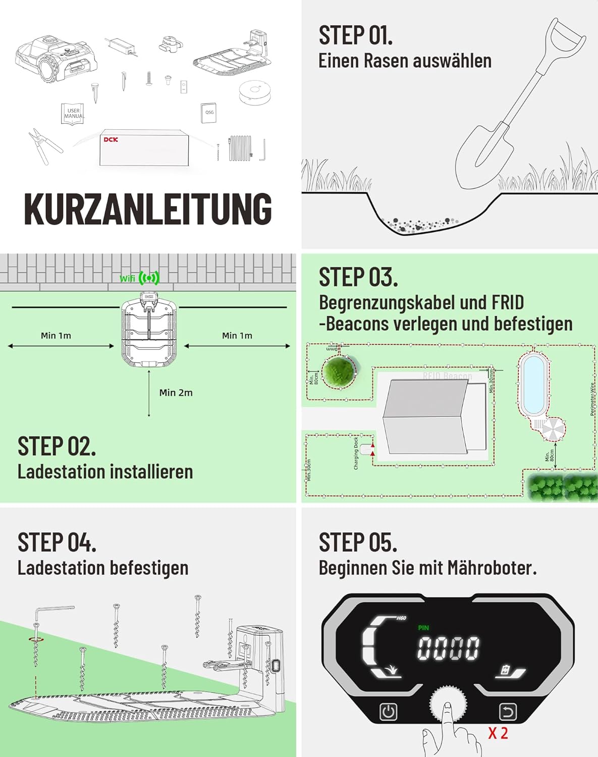 - Sicher und zuverlässig: Lassen Sie moderne Technologie die Zeit füllen, die Sie mit der lästigen Aufgabe des Rasenmähens verschwenden. Nehmen Sie sich Ihre Wochenenden für etwas Produktiveres zurück! Richten Sie ihn einfach über die mobile App