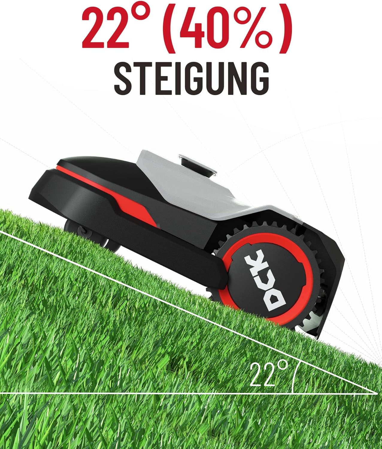 - Schneideffizienz: DCK Mähroboter ist für Rasenflächen bis zu 500 m² ausgelegt, intelligente Planung Schneidpfad, paralleles Mähen, mehr ordentlich und schönen Rasen konzipiert. Die Schnitteffizienz beträgt 100㎡/h, was doppelt so effizient wie