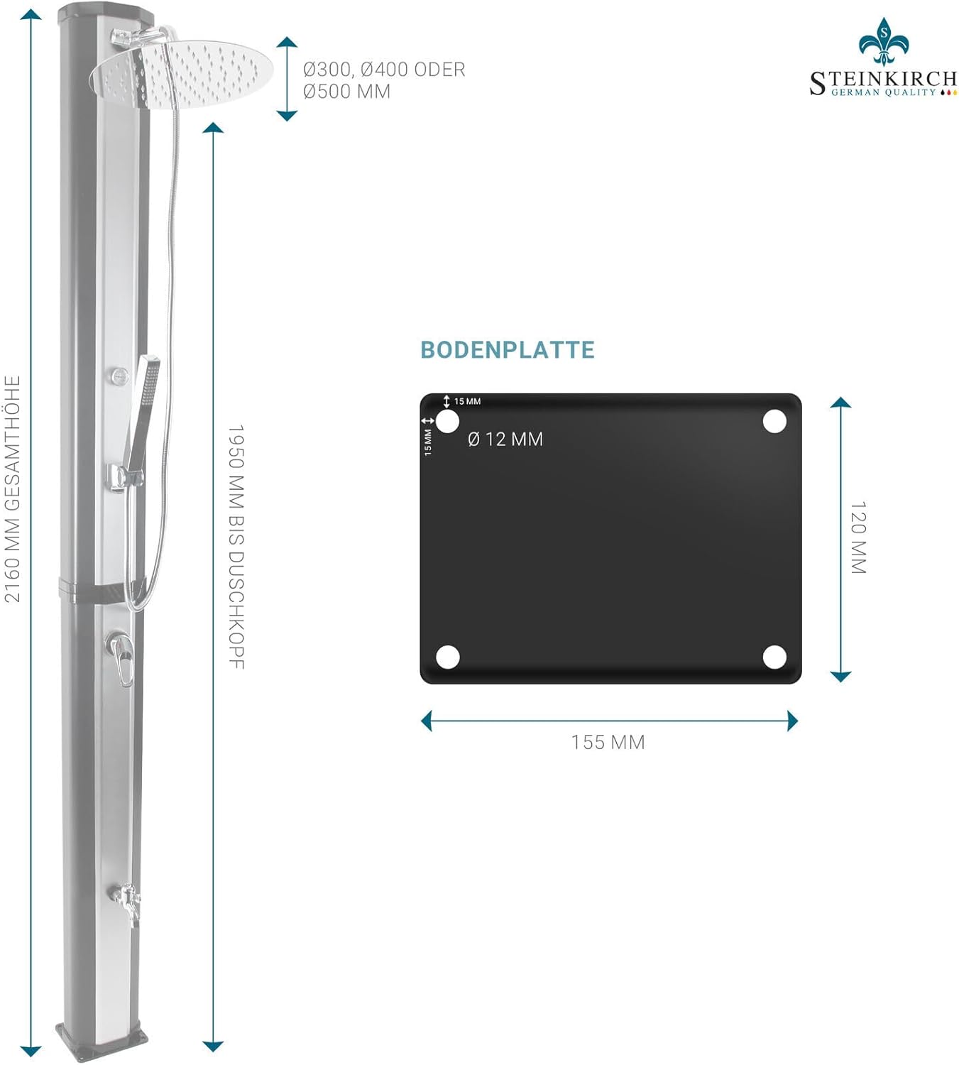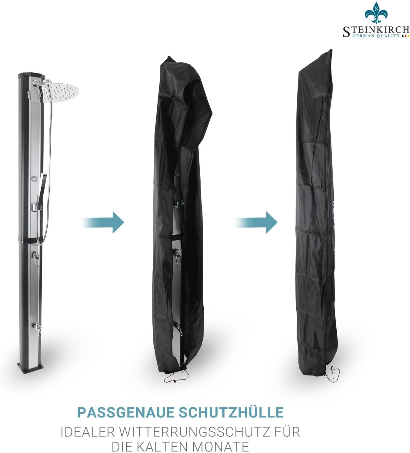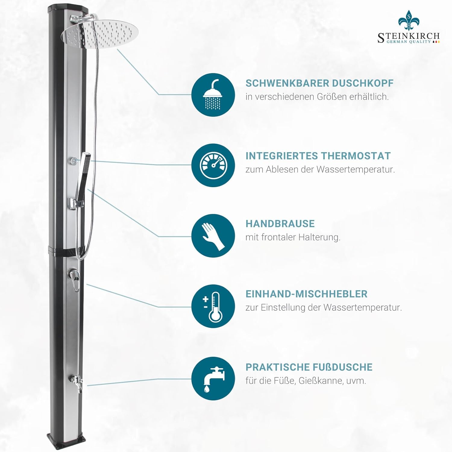 - Eine *Premium* Deluxe Solardusche, wie für Sie gemacht 2,2 Meter hoch und 40 Liter Neustes Premium Modell 2024 Neu: jetzt zusätzlich mit Handbrause, Steinkirch Edelstahl Duschkopf, Schutzhülle und Thermometer