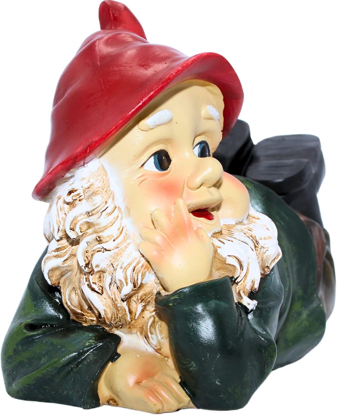 - Die Gartenfigur aus Polyresin ist eine entzückende Dekoration für Ihren Garten, Terrasse oder Balkon. Der liegende Zwerg ist detailreich gestaltet. Die rote Zipfelmütze und der weisse Bart sind eine traditionelle Darstellung eines typische
