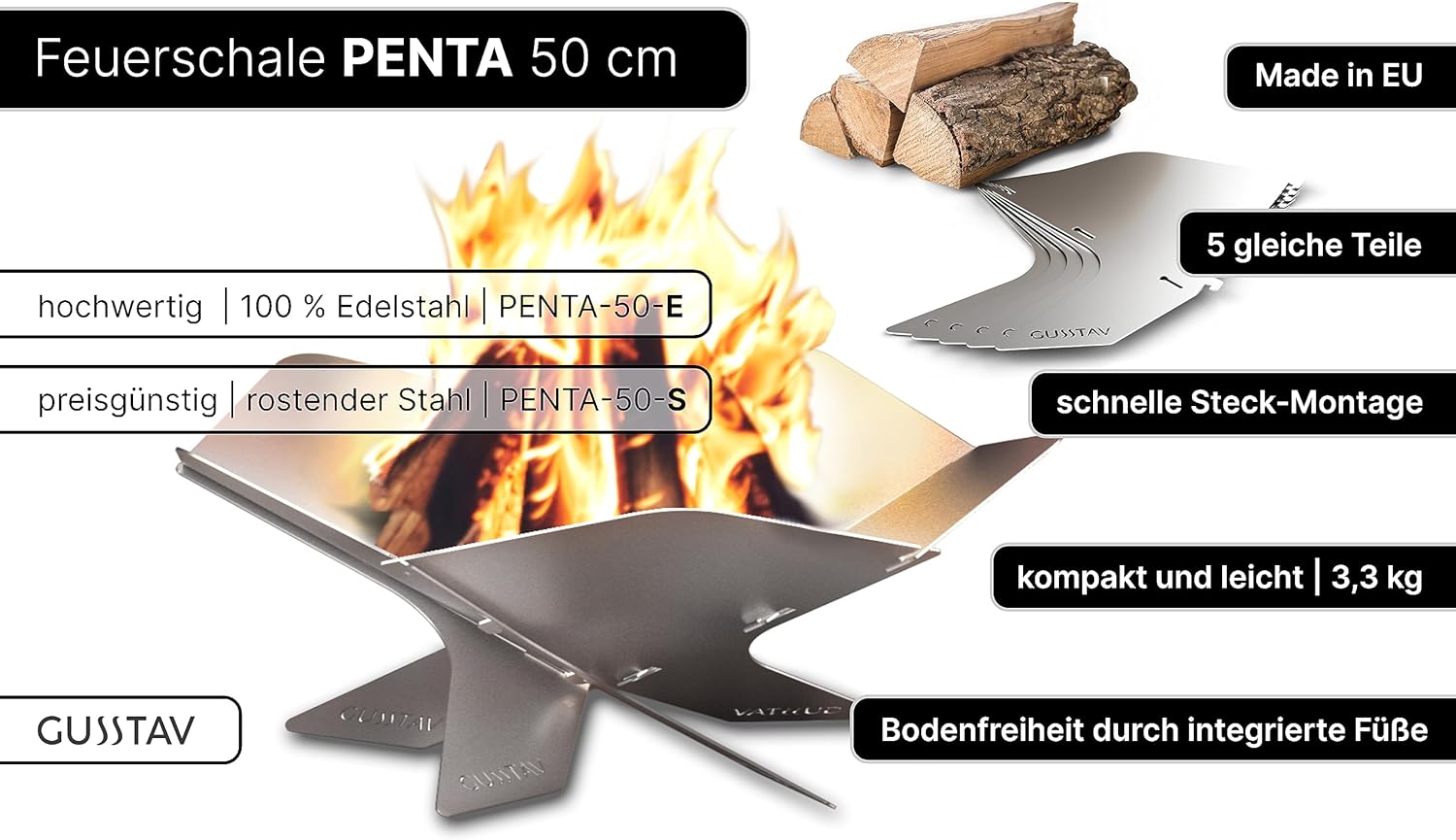 - SCHNELL UND LEICHT AUFGEBAUT: Die faltbare Feuerschale besteht aus 5 gleichen Teilen, die in 30 Sekunden ineinander gesteckt werden können.