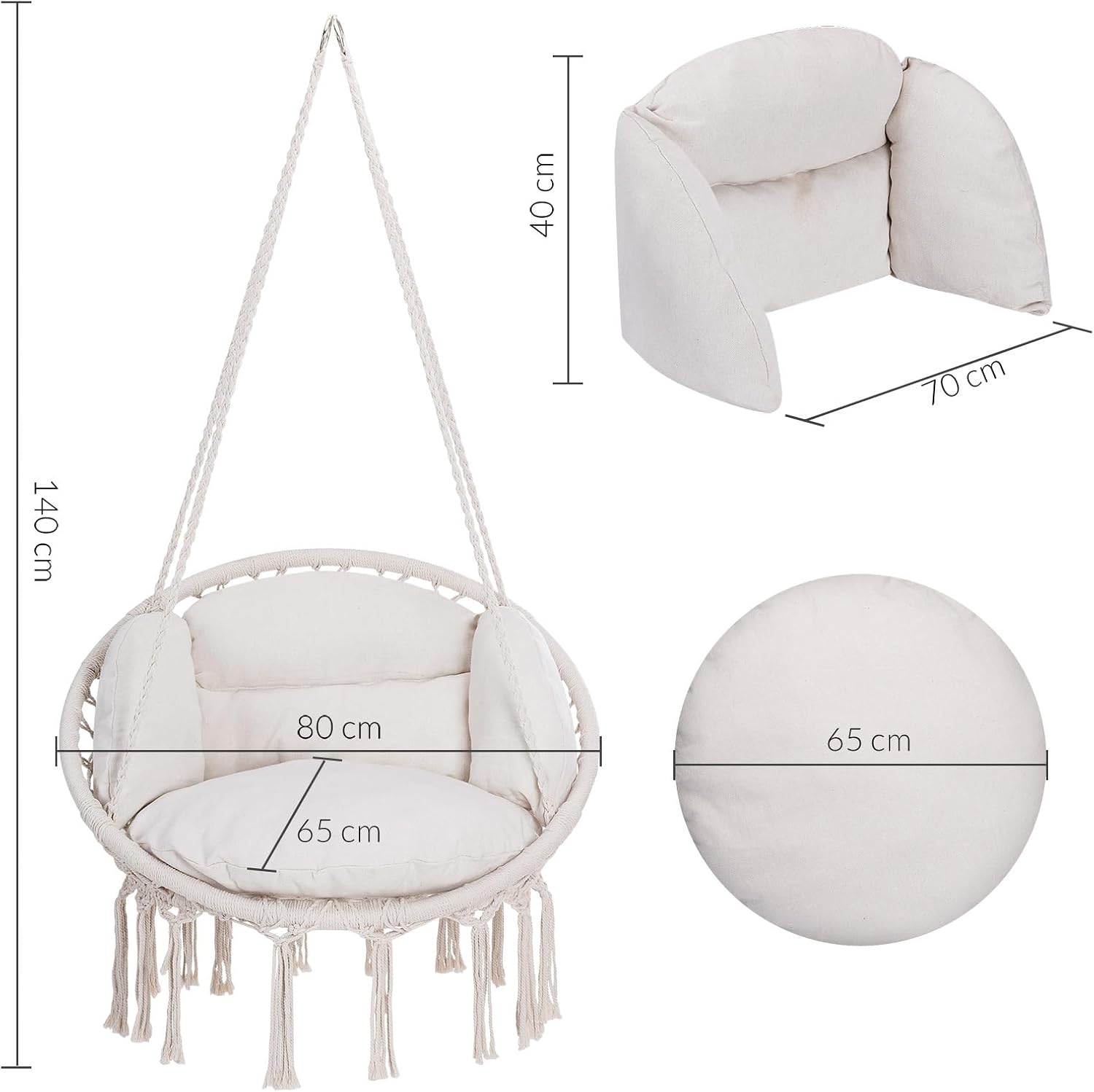 - ROBUST - Dank der stabilen Konstruktion aus verzinktem, rostfreiem Metall und den 1,8 cm starken Halteseilen bietet der Hängesessel perfekte Stabilität. Auf der insgesamt 80cm breiten Fläche kannst du dich sicher zurücklehnen - ideal für