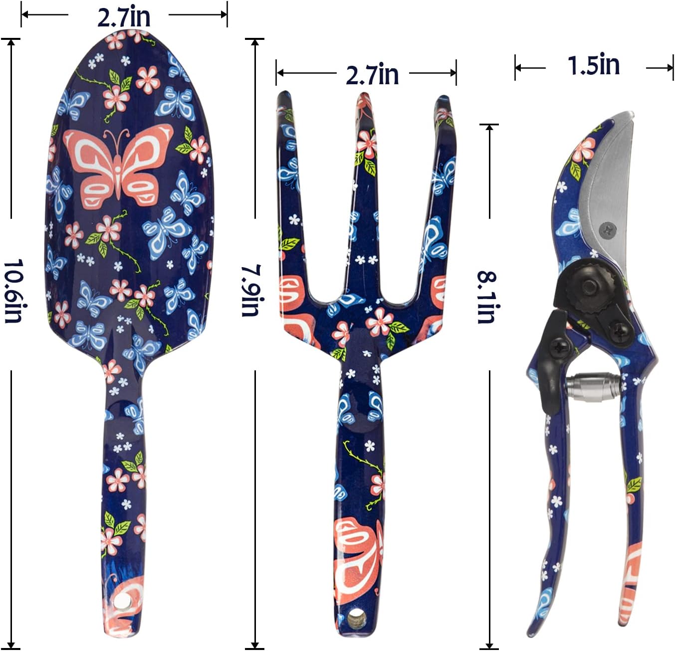 - Schönes Aussehen: 3-teiliges Gartengerät mit Blumenmustern.