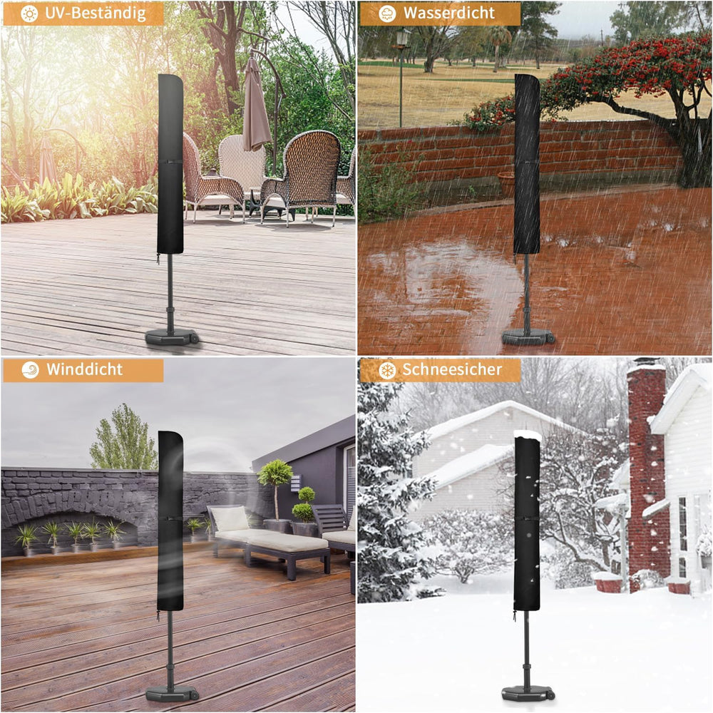 - 【Einfach Zu Verwenden】- Mit robuste Reissverschluss können Sie die Abdeckung leicht abdecken oder abnehmen. Und es gibt eine zusätzliche Kontraktionsstange, mit der Sie die Schirmhülle einfach ohne Leiter installieren können