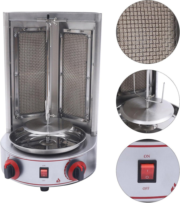 - GROSSE KAPAZITÄT: Der Gas-Kebab-Maker kann bis zu 17,6 Pfund Fleisch auf einmal braten, mit einer maximalen Kapazität von 26,45 Pfund. Er kann mehr als eine Person verpflegen. Daher können Sie ihn verwenden, um eine Grillparty mit Ihren Freunden und