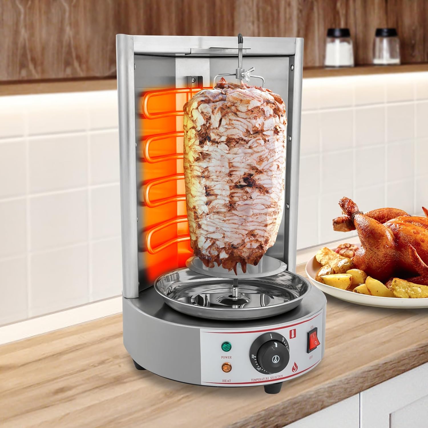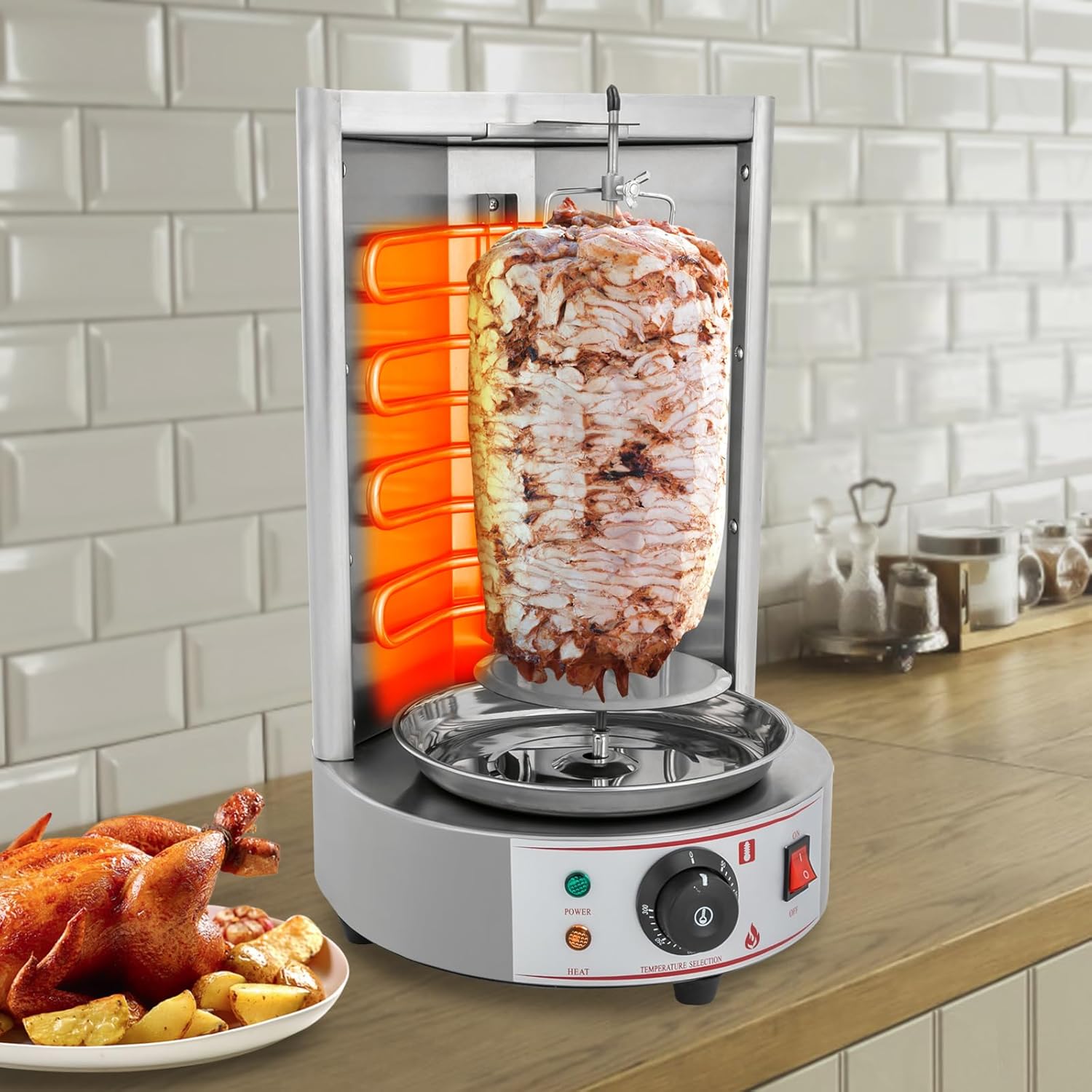 - 🧼Leicht zu reinigen dank Edelstahl und Ölwanne: Der Dönergrill besteht aus robustem, langlebigem Edelstahl und einer abnehmbaren Ölwanne zum einfachen Reinigen von Öl- und Wasserflecken.