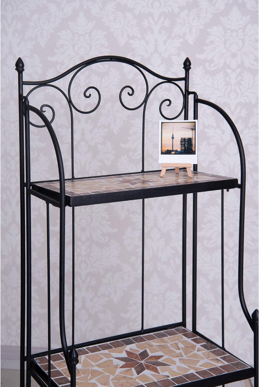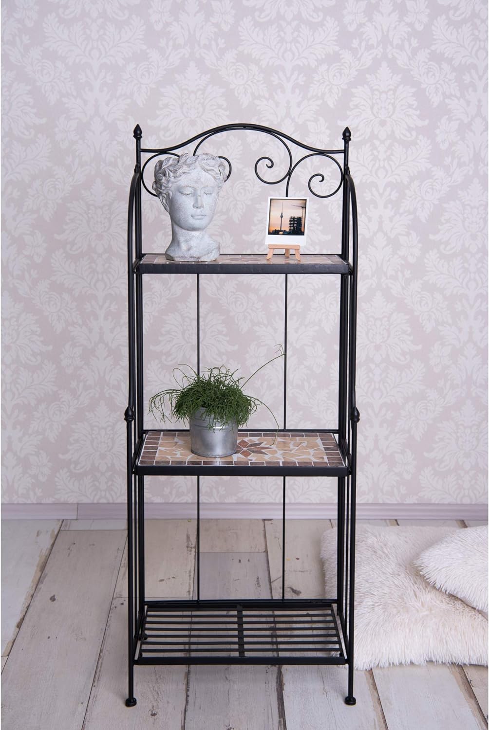 - Mosaik-Regal: pulverbeschichtetes Eisengestell mit dekorativen Verzierungen und drei Ablagen wovon zwei aus solidem Mosaik sind, die ohne Probleme Kilo-schwere Lasten tragen können
