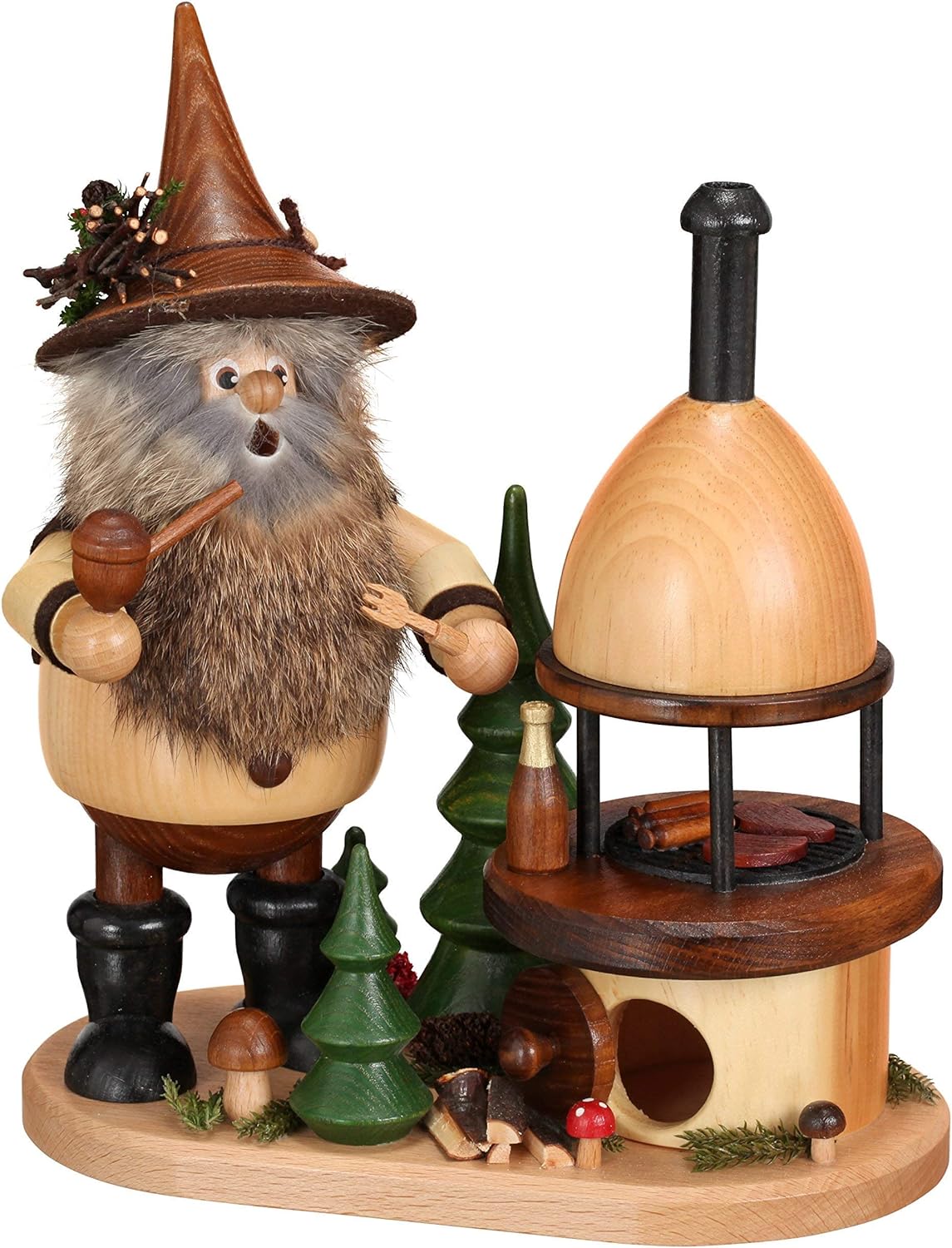 DWU Echt Erzgebirgischer Räuchermann® Waldwichtel gross Wichtel am Grillofen auf Brett Natur - inkl.