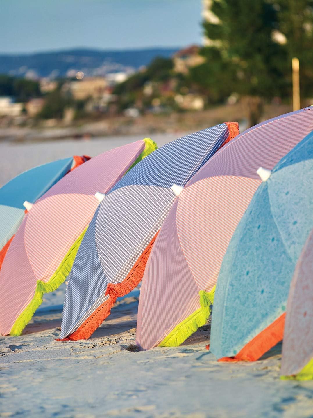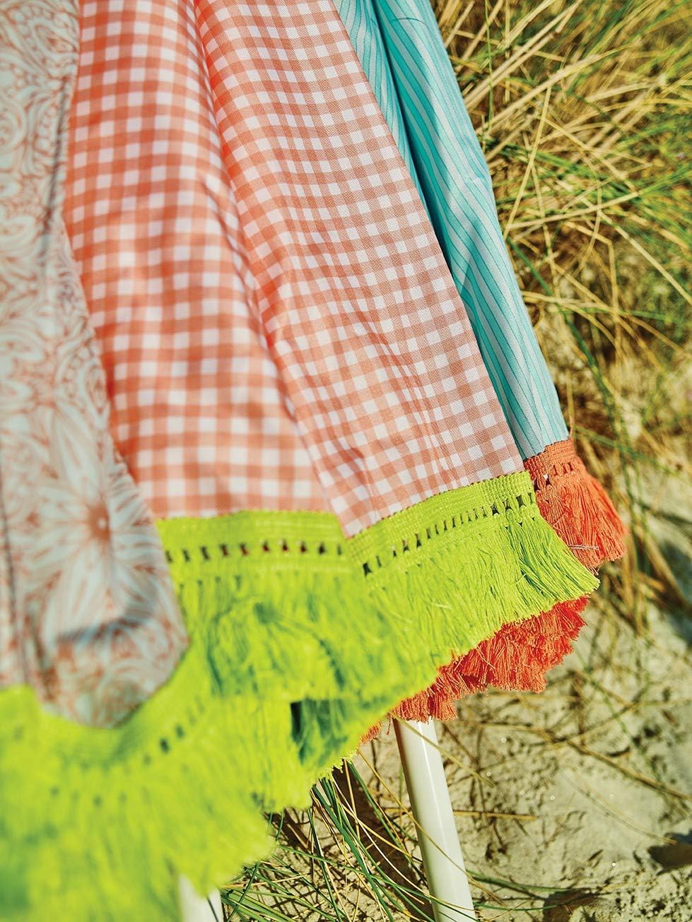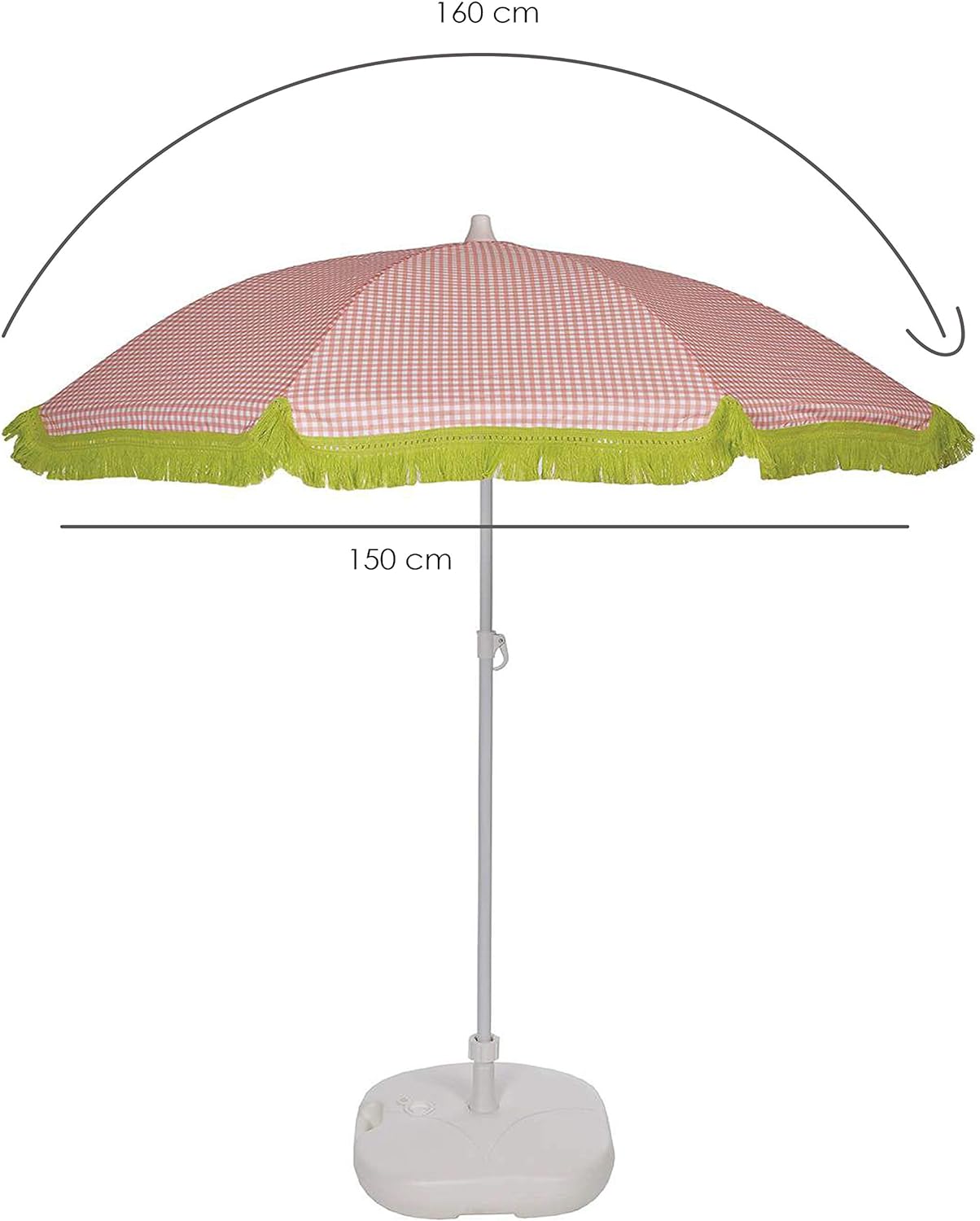 PRODUKTBESCHREIBUNGEN Sonnenschirm für Strand, Terrasse und/oder Garten #BORABORA der Marke EZPELETA Sonnenschutz Regenschirm im Sommerdesign, sehr sorgfältig verarbeitet und detailliert. UV-Schutzfaktor 50+, blockiert 97,5 % der UV-Strahlen. Blumenmuster / Karo / Streifen Ausführung des Produkts mit Fransen in einer Farbe. Gestell aus weissem Stahl. Inklusive Tragetasche. Erhältlich in 6 verschiedenen Designs. - Format: Octagonal - Anzahl der Stäbe: 8. Produktlänge: Verstellbar - Anwendung: Rohr-Pincho 22/25 mm. Durchmesser - LSF 50+: 97,5 % UV-Schutz.