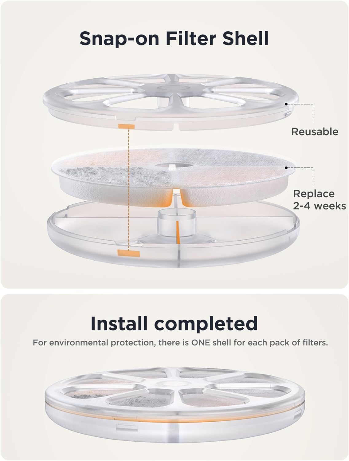 - 【Für eine optimale Nutzung】 Weichen Sie den Filter 5 Minuten lang ein und spülen Sie ihn vor dem Gebrauch 30 Sekunden lang ab. Um die Filterwirkung zu erhalten, wird empfohlen, die Filter alle 2 Wochen zu ersetzen. Wenn Sie mehrere Haustiere haben,