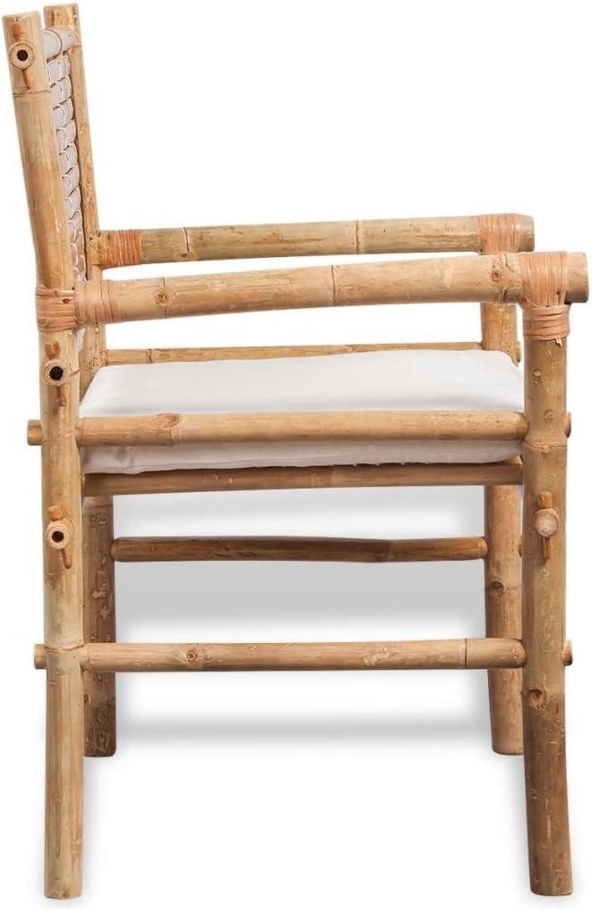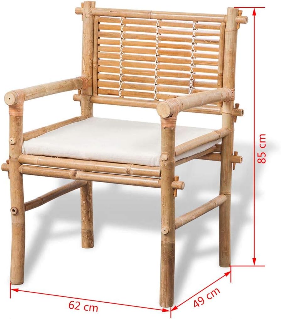 - Sitzkissen-Farbe: Weiss Tisch- und Stuhlmaterial: Bambus Kissen-Material: 35% Baumwolle, 65% Polyester Tisch-Grösse: 50 x 40 x 50 cm (L x B x H) Stuhl-Grösse: 62 x 49 x 85 cm (B x T x H)