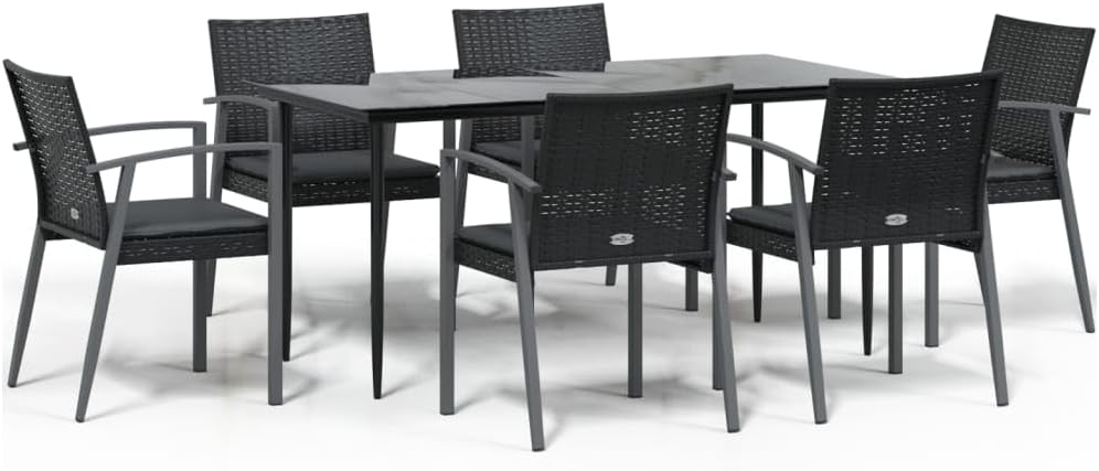 Variante: 7-tlg(Tisch:160 x 80 x 74 cm) Typ-4 Schwarz