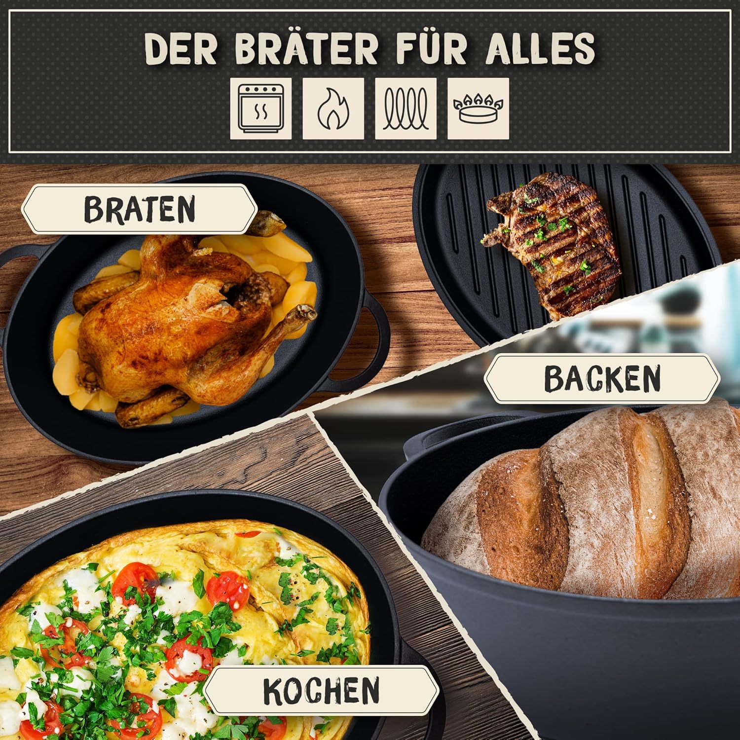 - ? EINE PAUSE, ÜBERALL KÖNNEN SIE ES ALS Gänsebraten, Brotbackform, Schmorpfanne oder Outdoor-Feuertopf/Dutch Oven verwenden. Mit unserem multifunktionalen Bräter zaubern Sie in jeder Situation unvergessliche Gerichte für Ihre Gäste.