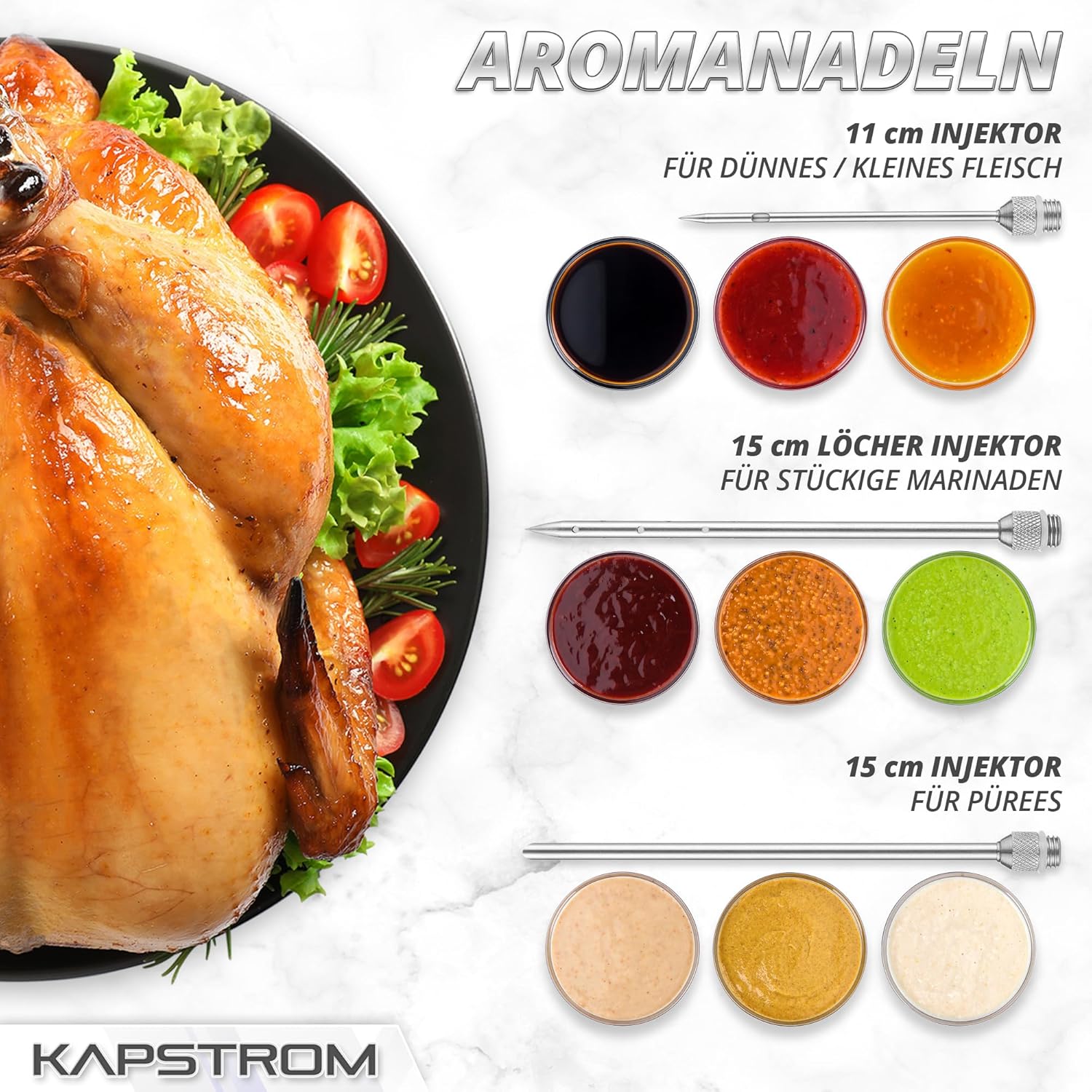 - LEICHT ZU REINIGEN – Dieses spülmaschinenfeste Grill-Injektionsset sollte in heissem Seifenwasser mit den lebensmittelechten Nylonbürsten gereinigt werden, kann aber auch in die Spülmaschine gegeben werden