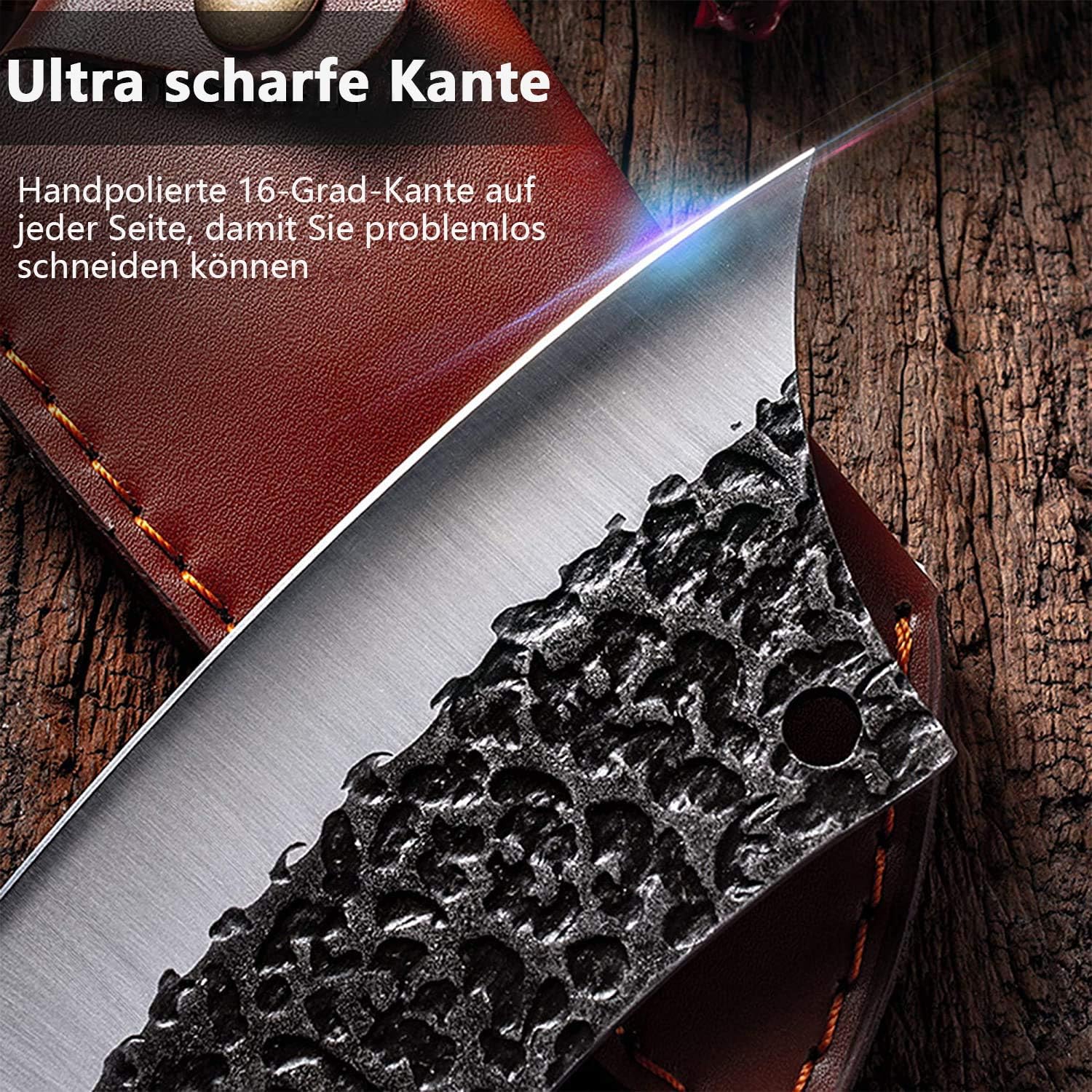 - Premium Qualität - Das Fleischermesser besteht aus hochwertigem Stahl mit hohem Kohlenstoffgehalt. Unser professionelles Hackmesser bietet eine aussergewöhnliche Leistung in Bezug auf Kantenbeständigkeit und längere Lebensdauer. Es hilft Ihnen bei perfekten Schnitt. Angemessene Wartung nach jedem Gebrauch, es wird eine lange Lebensdauer dauern.