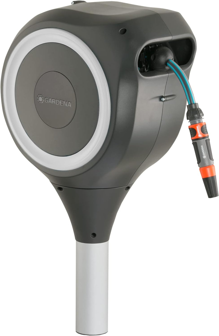 - Mit RollControl-Technologie: Automatisches, sicheres und zuverlässiges Aufrollen dank eingebauten Arretierstops und integrierter Schlauchführung - gleichmässiger Einzug, ohne verknoten/abknicken
