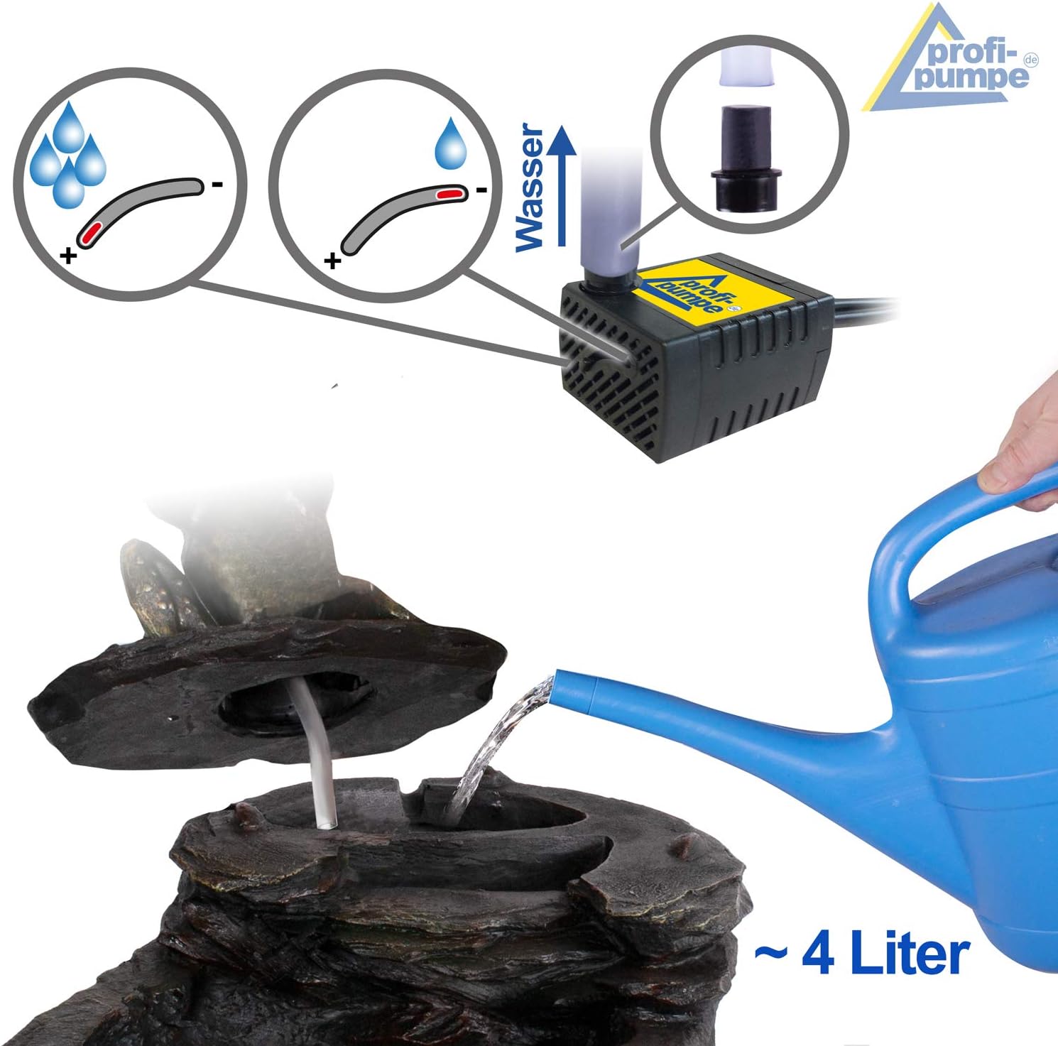 - Mit 230V/12V-Anschluss | Inkl. 3,2 Watt Pumpe | Inkl. LED-Ring in warmem Weiss (austauschbar)