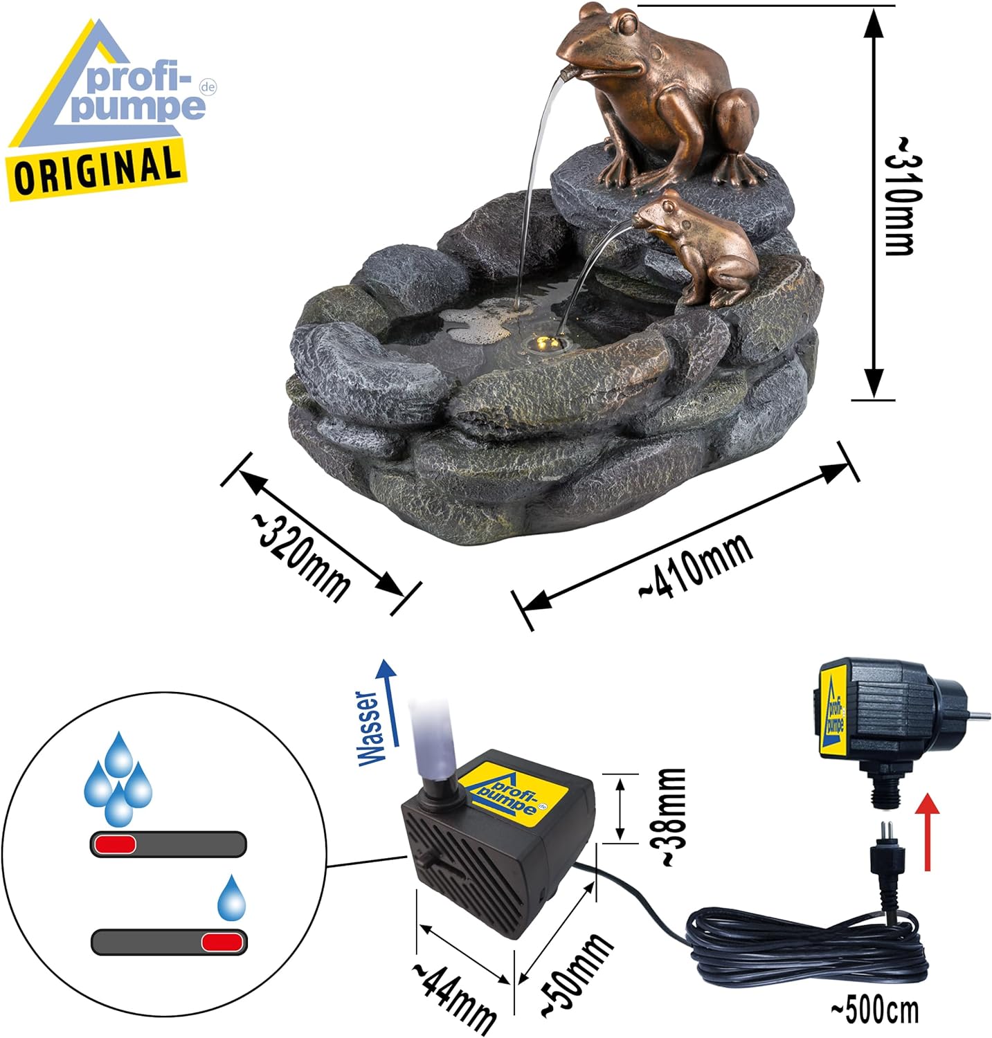 - ⭐⭐⭐⭐⭐Hinweis: Frost kann zu Schäden am Gartenbrunnen und der Pumpe führen. Bei Frostgefahr muss der Gartenbrunnen und die Pumpe entleert werden, mit klarem Wasser gespült und trocken eingelagert werden. Dann haben Sie sehr lange Freude daran!
