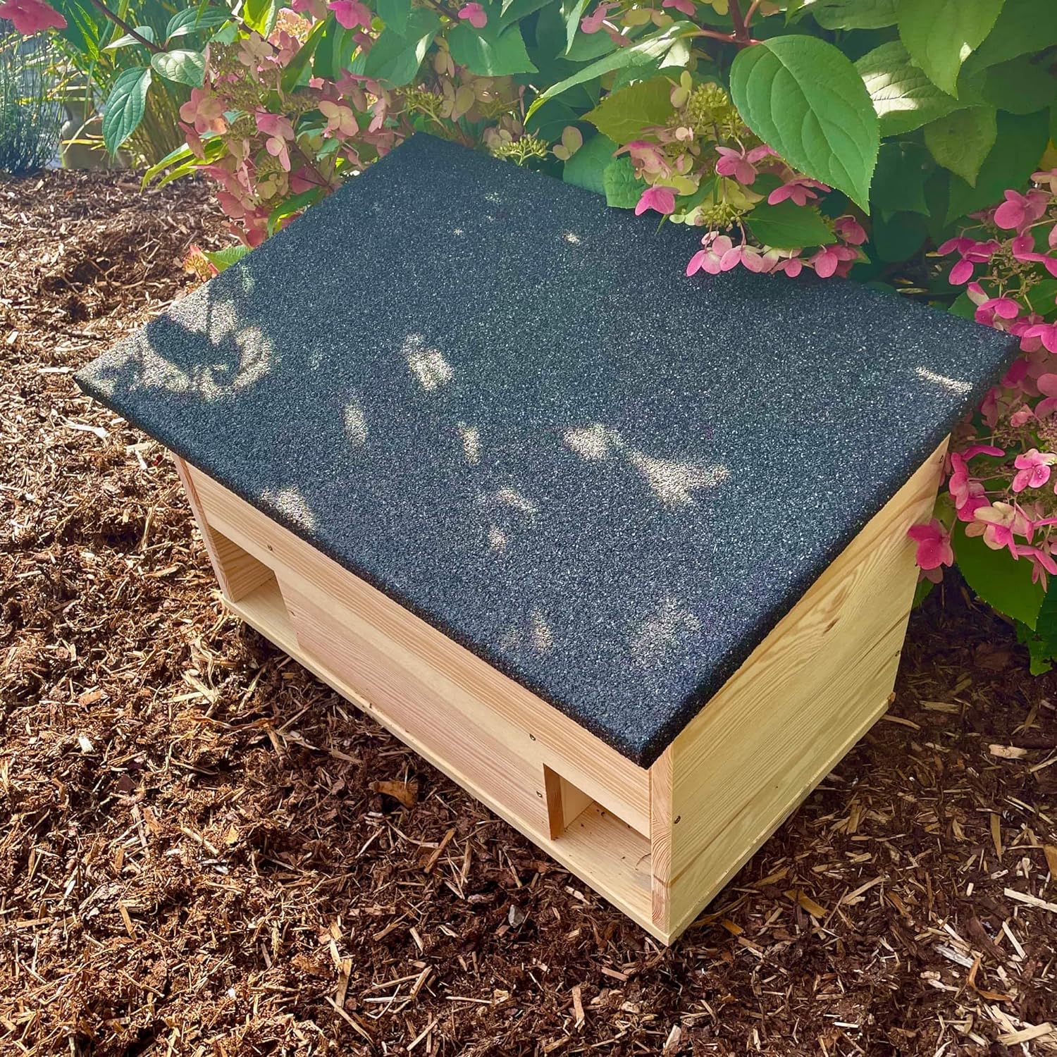- IGELHAUS WETTERFEST – Das hochwertige Igelfutterhaus mit witterungsbeständigem Dach von gartenetage ist in Deutschland von Hand und aus Massiv-Holz produziert. Das Igelhotel ist robust & wetterfest und passt perfekt in den Garten.