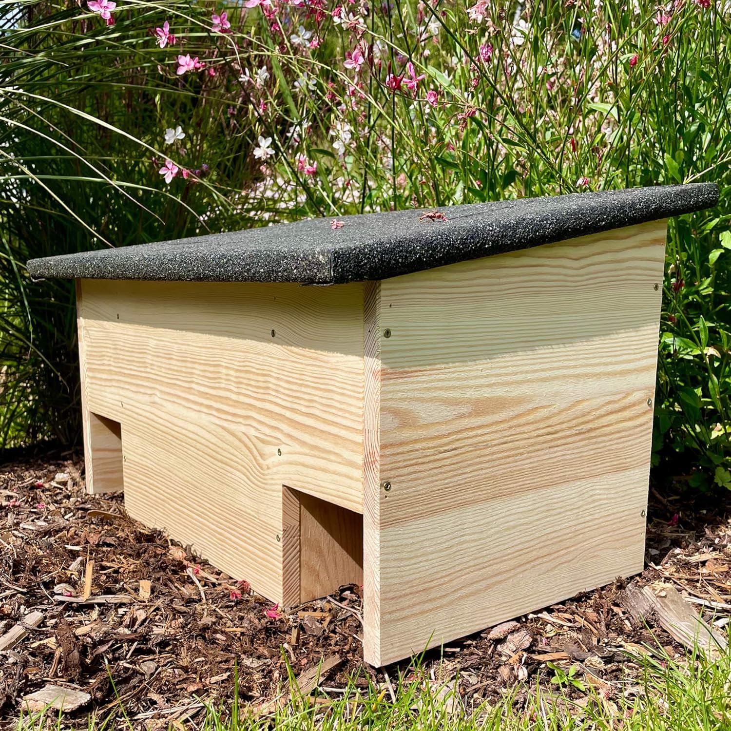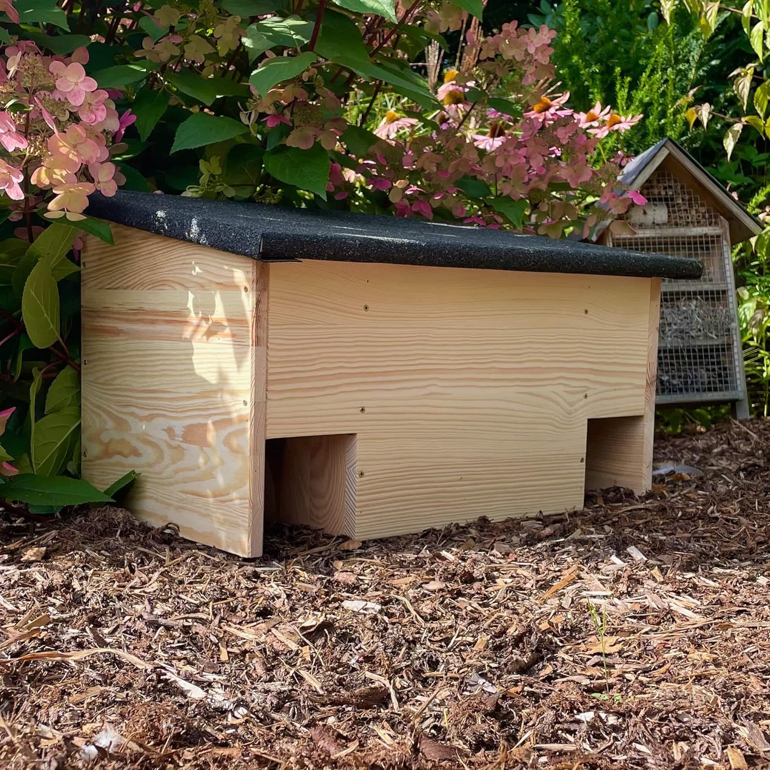 - IGELHAUS WETTERFEST – Das hochwertige Igelfutterhaus mit witterungsbeständigem Dach von gartenetage ist in Deutschland von Hand und aus Massiv-Holz produziert. Das Igelhotel ist robust & wetterfest und passt perfekt in den Garten.