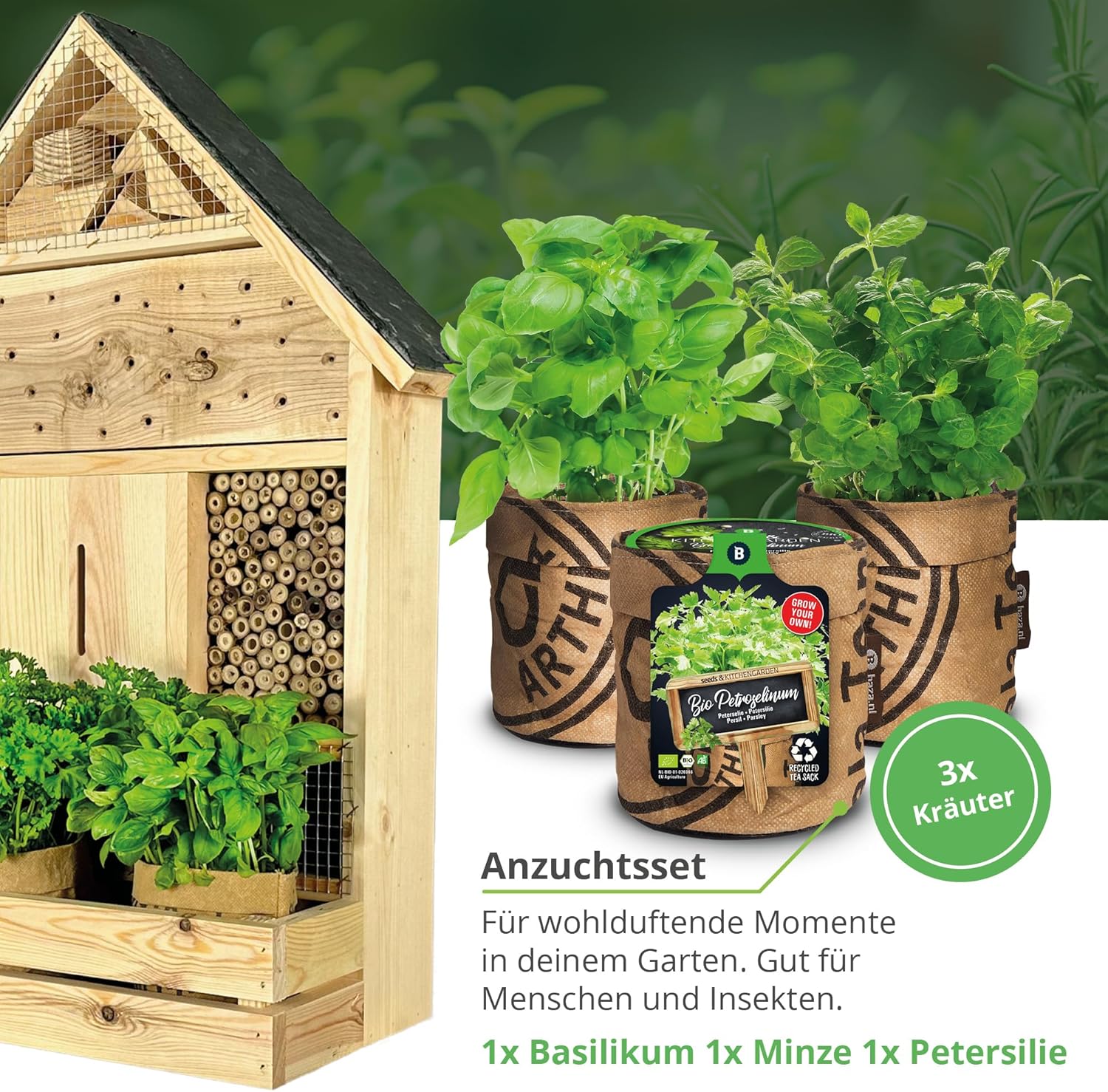 - INKLUSIVE ANZUCHTSET - Die mitgelieferten drei Anzuchtbeutel enthalten alles, was Sie benötigen um nicht nur eine Freude fürs Auge, sondern auch ein Paradies für nützliche Insekten zu schaffen. Enthält Samen, Erde & ein Pflanzgefäss aus recycelten