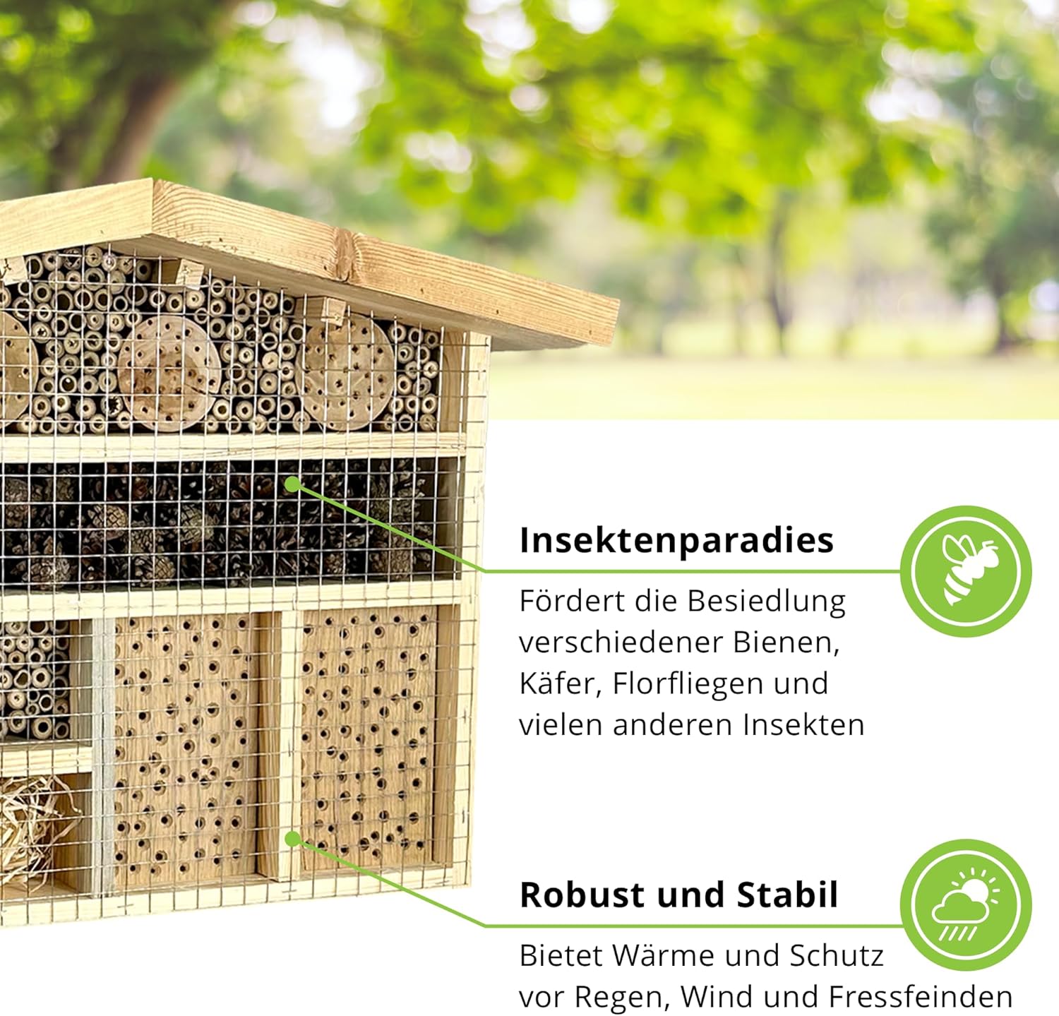 - NÜTZLICH – Insektenhotels sind immer eine gute Investition. Helfen Sie der Umwelt mit diesem Marienkäferhotel, Bienenhotel und Insektenhaus wichtigen Nützlingen einen zusätzlichen Lebensraum zu geben.