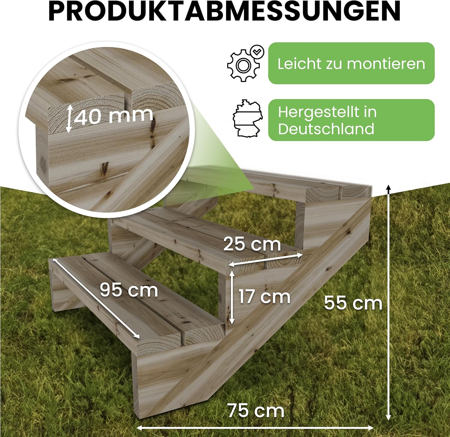 - ✅ Bohlen: Höhe 4 x Tiefe 12 x Breite 95 cm, Kiefer kdi, glatt gehobelt | Masse-Treppe: B 95 x T 75 cm x H 55 cm.