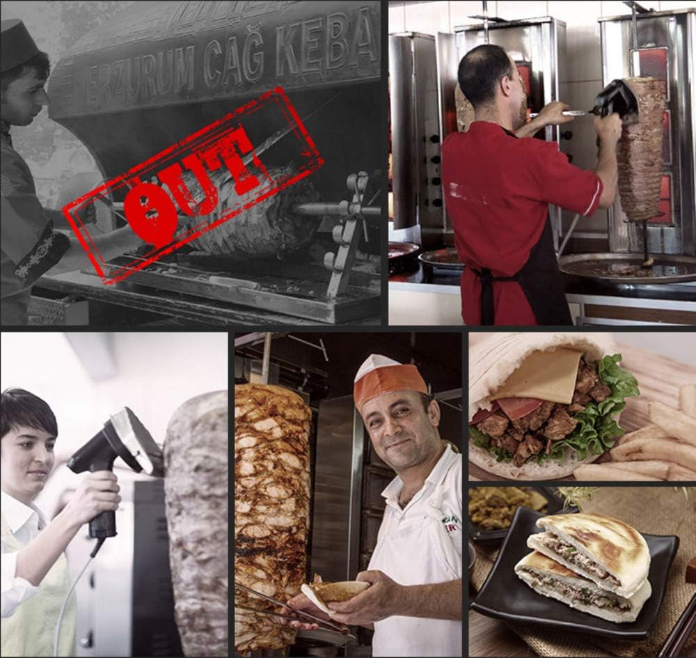 - EFFIZIENTES GRILLEN SCHNEIDEN: Dönermesser Cutter hat eine hohe Leistung, geringe Geräuschentwicklung und variable Geschwindigkeit. Einfaches Schneiden aller Fleischsorten;