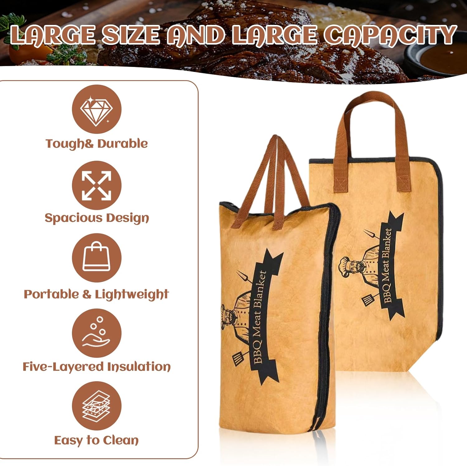 - 【Hochwertige Isolierung & Wasserdicht】Die wiederverwendbare Grill-Decke mit 5-lagigem Design hält das Fleisch warm und schützt es vor Feuchtigkeit. Sie ist eine wasserdichte BBQ Brisket Decke und robust, um Ihre Speisen sicher und temperiert zu