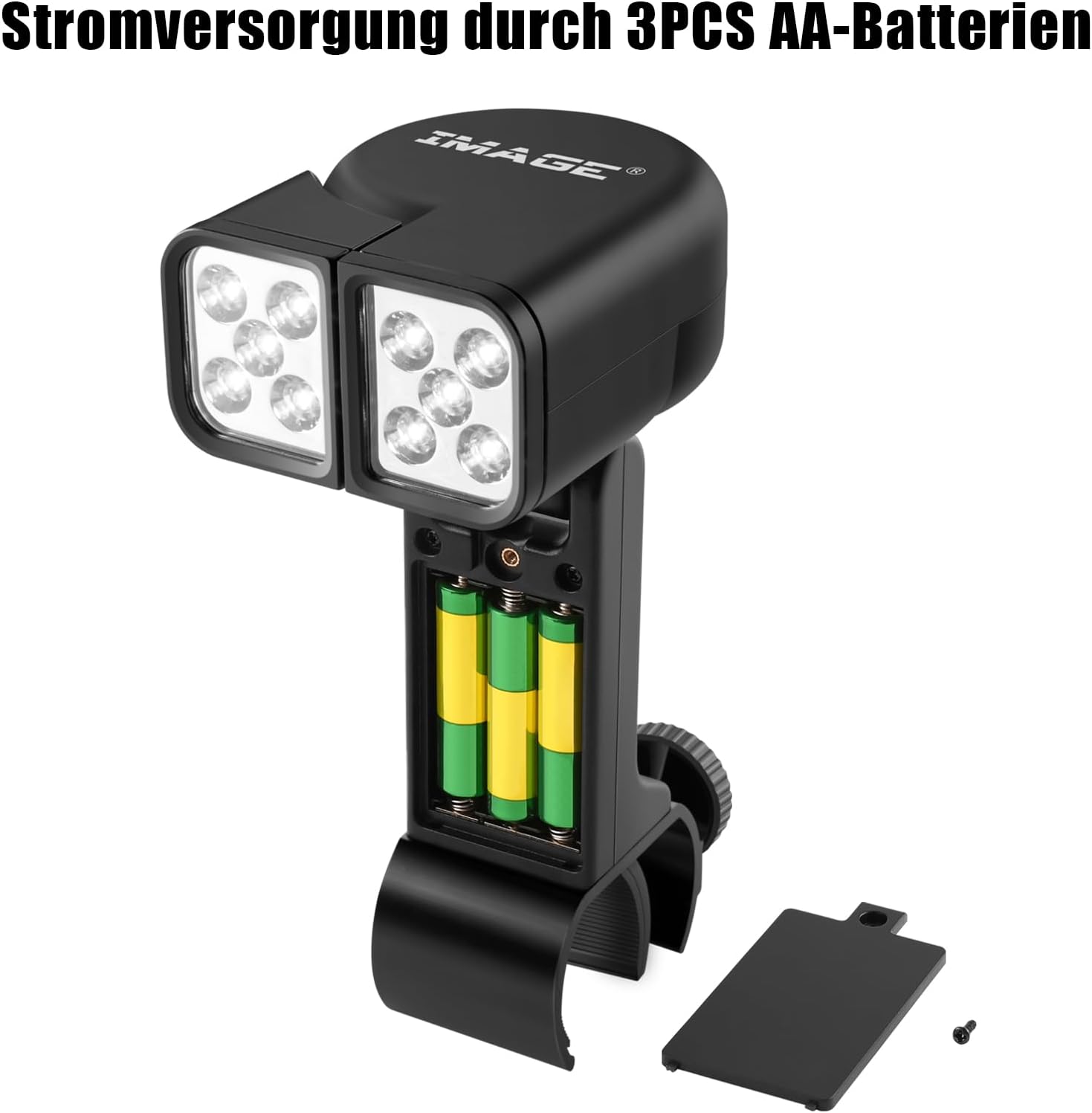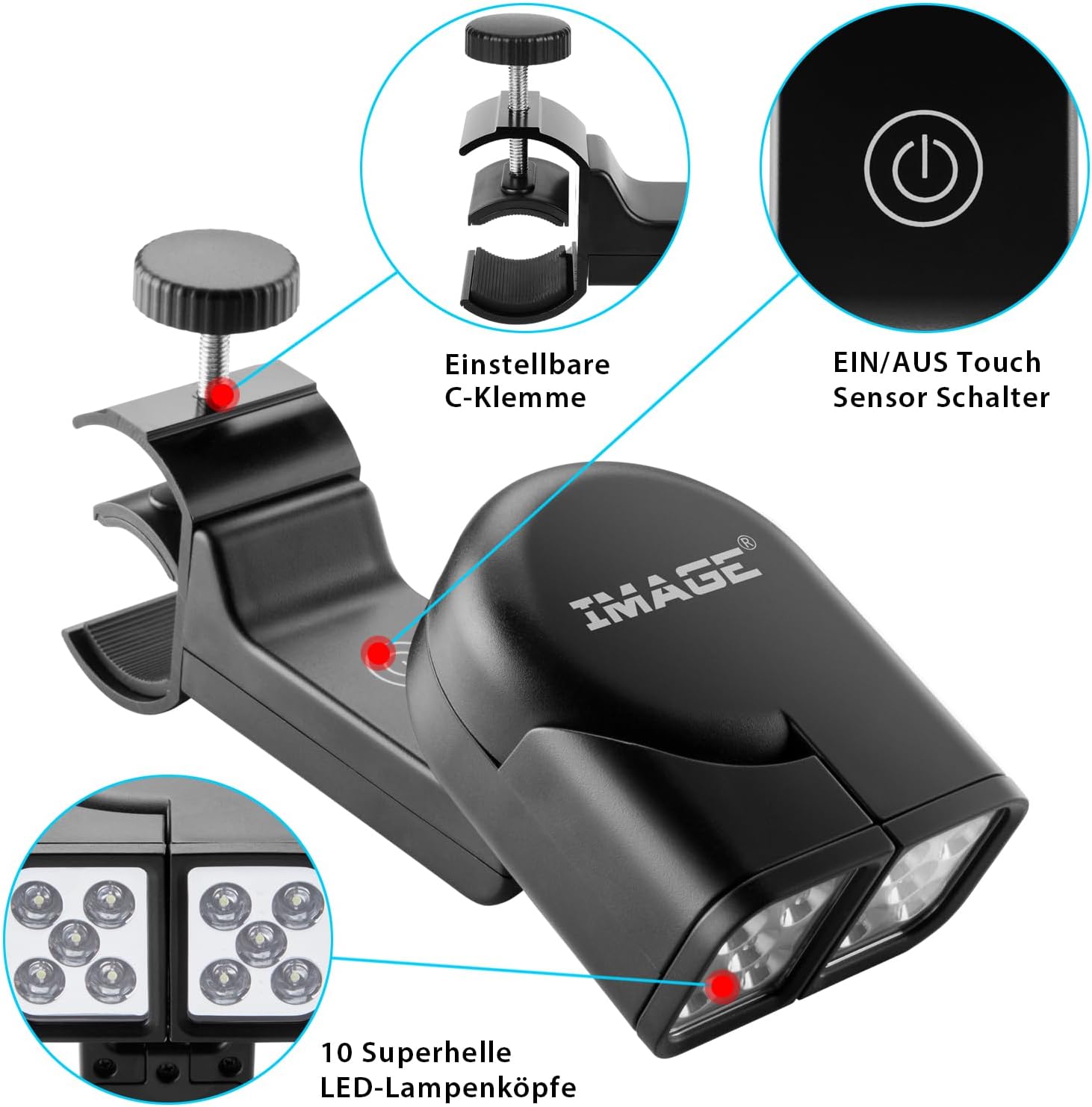 - 【Superhelle 10 LEDs】10 helle Leds mit über 100 Lumen. Zwei speziell entwickelte Kopflampen lassen sich separat von links nach rechts um 90 Grad drehen, ermöglicht einen breiten Beleuchtungsbereich.