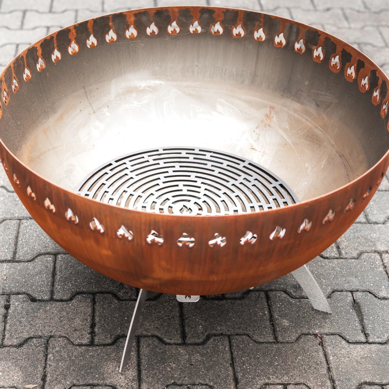 - ATTRAKTIVES DESIGN: Mit einer Oberfläche in Cortenstahloptik bietet diese Feuerschale eine moderne und ansprechende Ästhetik. Eine Design-Feuerschale mit besonderen Extras und einem stabilen Standfuss, um das Feuer sicher zu geniessen.