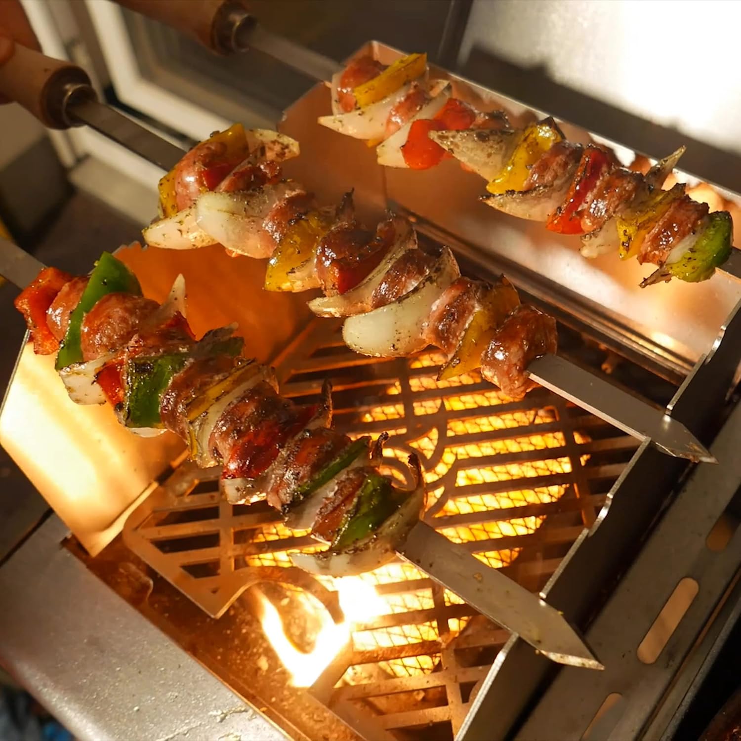 PRODUKTBESCHREIBUNGEN Ein massiver Windschutz für den Broil King, der Deine Sizzle Zone gleichzeitig in einen Spiessgrill verwandelt. Selbst die verlässlichen Broil King Brenner sind anfällig für Windstösse und können so ausgehen und das Gas strömt weiter nach. Wir haben unseren vielfach bei den Napoleon Sizzle Zones erprobten Windschutz hergenommen und ihr für die Broil King Serie angepasst. Hier haben wir uns auf den Profi verlassen, und zwar Klaus Grillt, der die Sizzle Zone seines Broil King als erstes mit unserem Windschutz getunt hat. Die passenden Grillschwerter G-1100 haben wir auch.