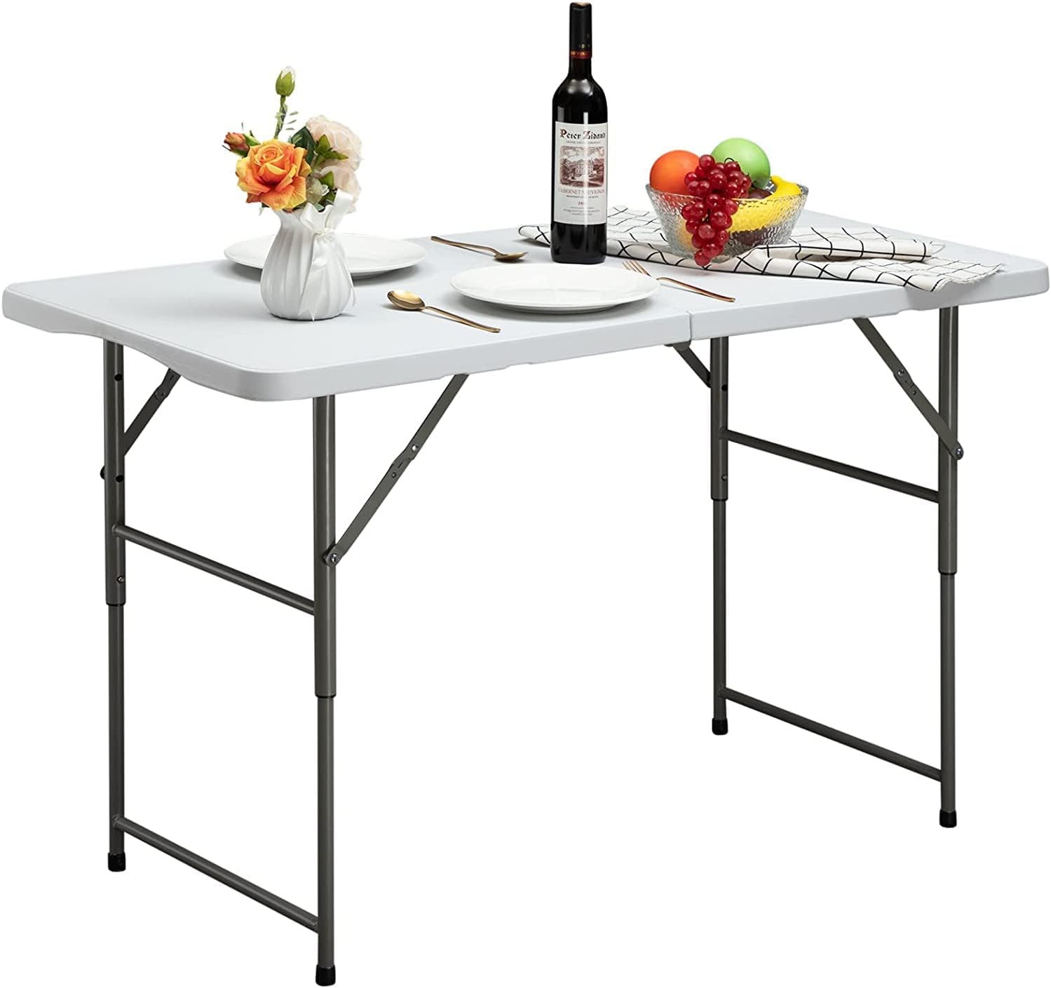 - Abmessungen – Grösse vollständig ausgeklappt: 122 (L) * 60 (B) * 48-74 (H) cm, höhenverstellbar, dieser Klapptisch bietet Platz für 4-6 Erwachsene. Kann leicht in zwei Hälften gefaltet werden, wodurch der Stauraum reduziert wird. Es wiegt nur 8 kg