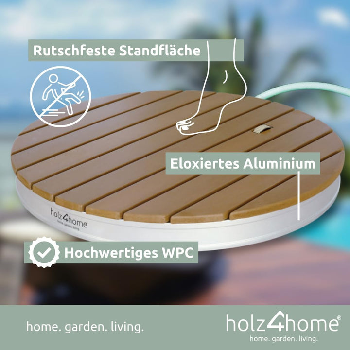 - ✅ ÄSTHETISCHER HINGUCKER: Ob rund oder eckig, in WPC oder echtem Teakholz - diese Aussendusche verleiht deiner Aussenanlage einen stilvollen Touch. Keine festen Bodenverankerungen notwendig.