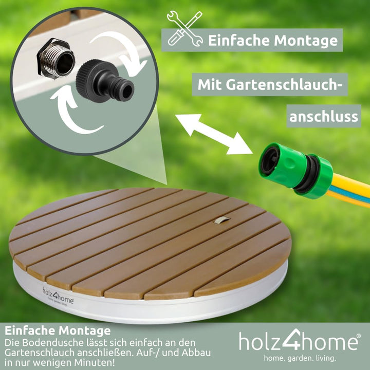 - ✅ EINFACHE INSTALLATION: Dank des integrierten Gartenschlauchanschlusses und des simplen Designs ist der Aufbau der Bodendusche im Handumdrehen erledigt. Auspacken, Anschliessen, Geniessen!