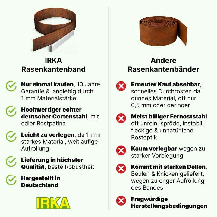 - Einzigartige Optik durch eine durchgehende Rasenkante von der Rolle, auch in den Höhen 20 und 25 cm erhältlich
