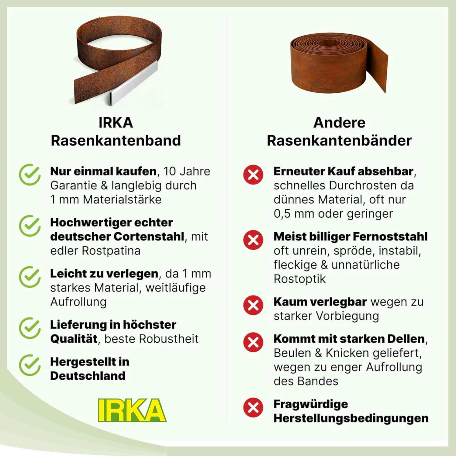 - Einzigartige Optik durch eine durchgehende Rasenkante von der Rolle, auch in den Höhen 20 und 25 cm erhältlich