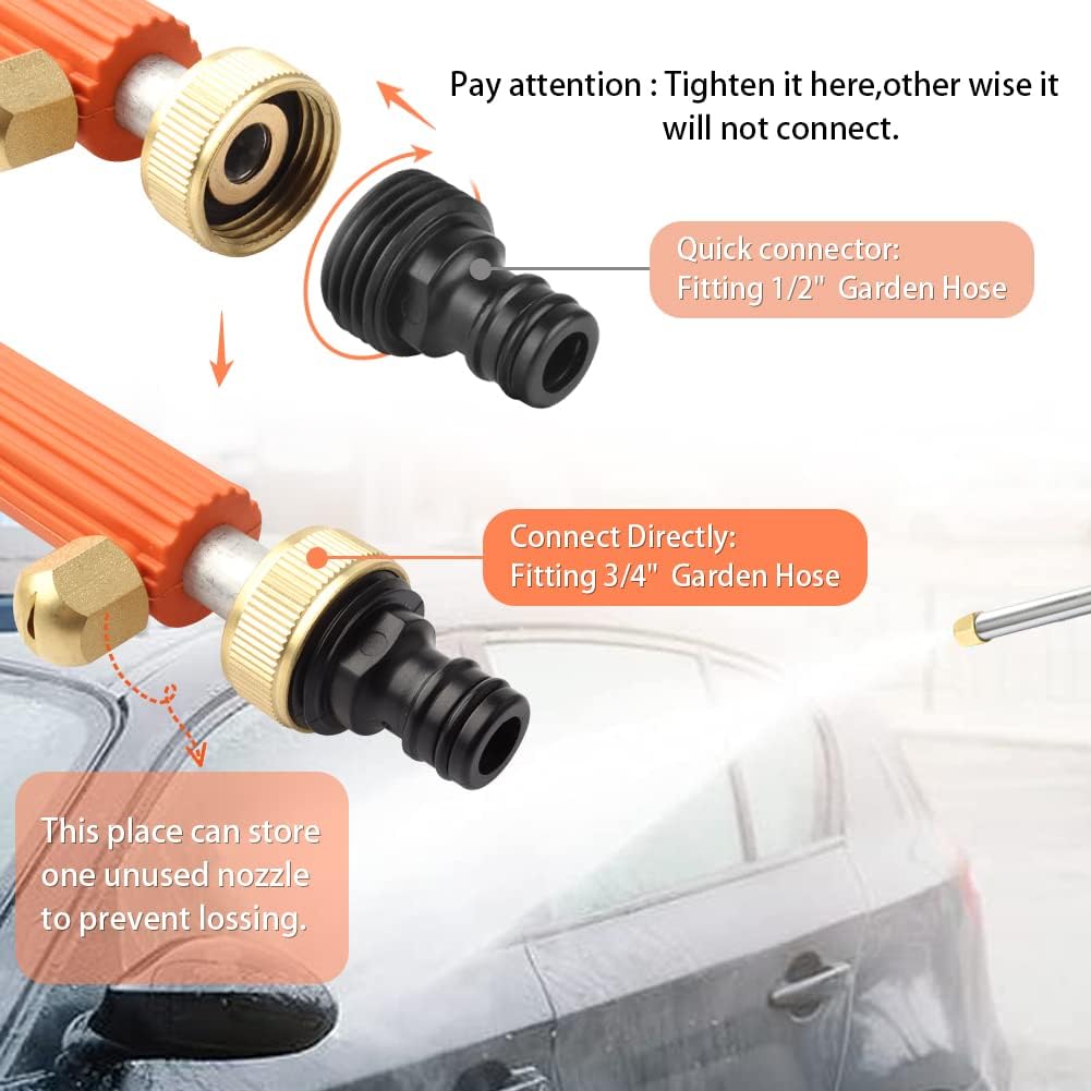 - 【Breite Anwendung】 Hydro Jet Power Washer Zauberstab kann zum Autowaschen, Hausputzen, Gartenbewässern, landwirtschaftlichen Bewässerung, Fensterputzen, Pflanzenbewässern und anderen Situationen verwendet werden, die Sie möchten. Dieser Stab ist