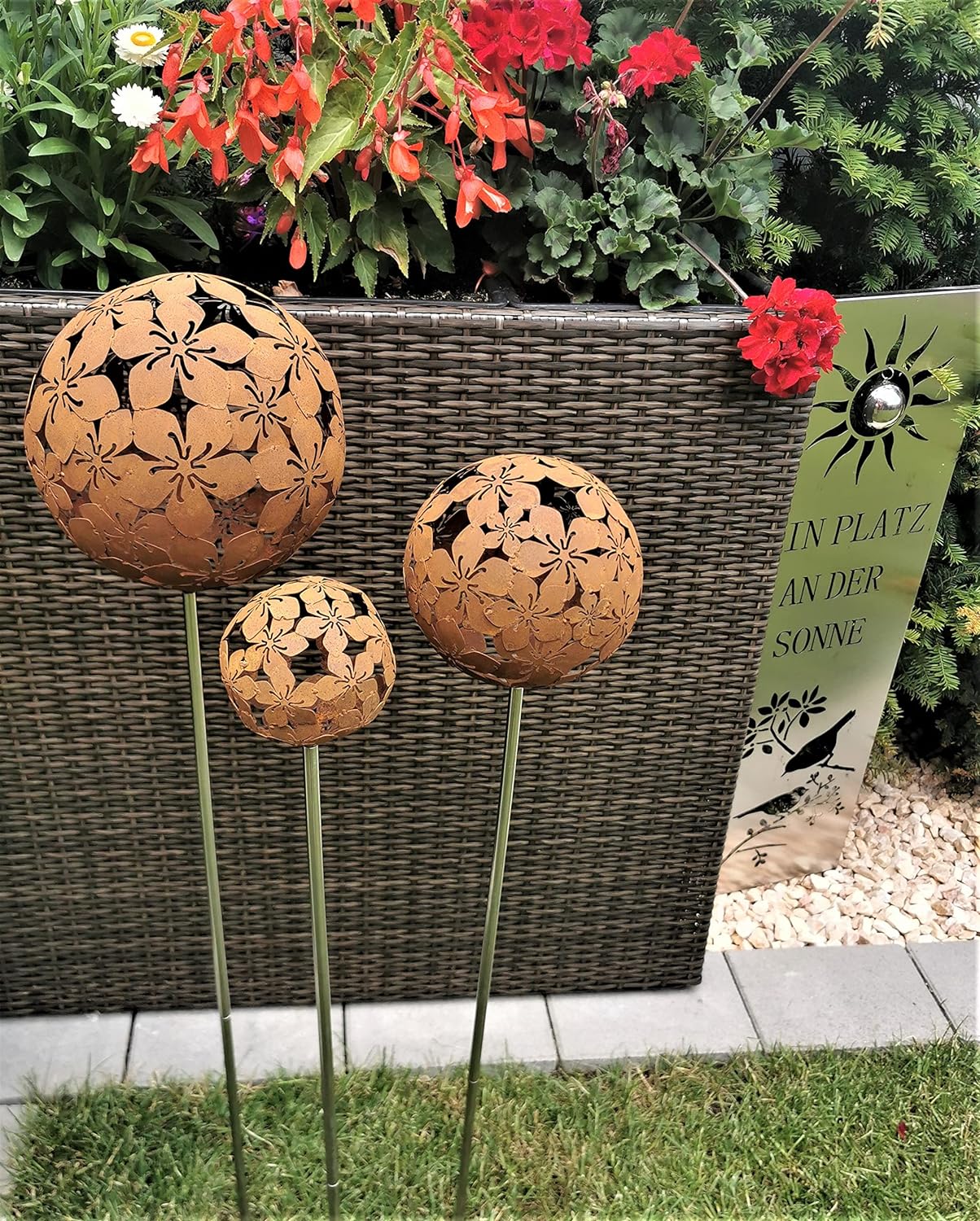 - Kugel Rosenkugel Flower Cortenstahl Dekokugel