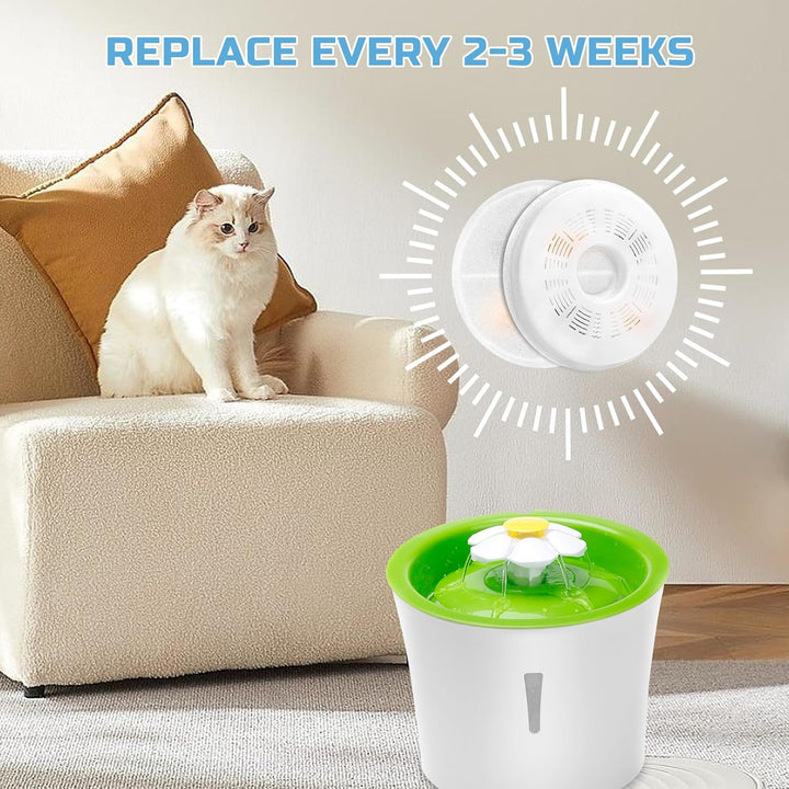 - 【Halten Sie Ihr Haustier gesund】 : Der verbesserte Katzenbrunnen filter besteht aus einer Baumwollschicht, einem aktivierten Kohlenstoff und einem Ionenaustauschharz. Es entfernt Haare, Schmutz, Gerüche und andere Verunreinigungen, damit Haustiere
