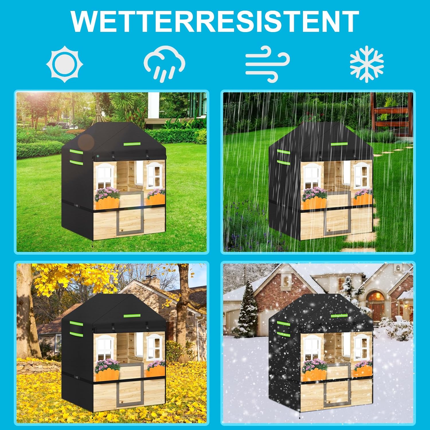 - 【Funktionen】Der Schutzhülle für Kinder Garten Spielhaus erfüllt die EU7P-Umweltschutzstandards, was ihn sicher und unbedenklich für Ihre Gesundheit macht. Der Spielhaus-Abdeckung schützt Ihr geliebtes Spielhäuser wirksam vor Regen, Schnee,