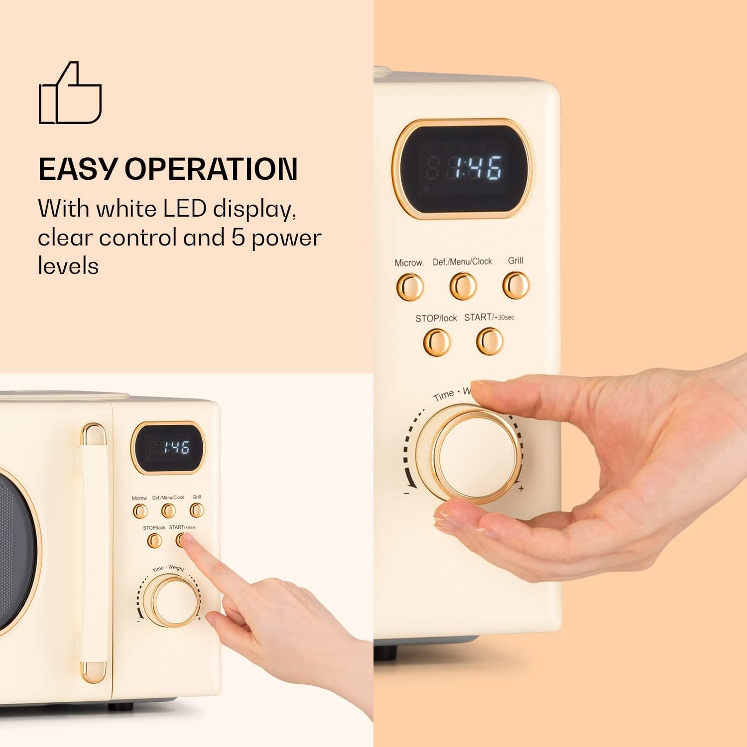 - LEISTUNGSSTARK UND EFFIZIENT: Diese 800 Watt starke Mikrowelle in Creme verfügt über 8 Automatikprogramme und 5 Leistungsstufen mit vielen Funktionen. Dazu gehört auch eine Auftau- und Pizzafunktion, mit der du Tiefkühlkost schnell auftauen kannst.
