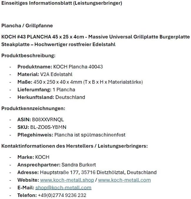 - ►Grillen Sie ab jetzt auf einem neuen Level mit einer Plancha von KOCH! Es gibt damit so viel mehr Möglichkeiten, die wunderbarsten Gerichte auf Ihrem Grill zuzubereiten – Steaks und Burger gelingen wie nie vorher und Gemüse fällt nicht mehr durch