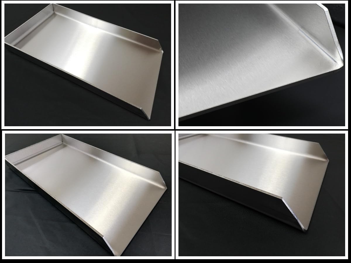 - ►Die Plancha hat die Masse 450 x 250 x 40 x 4mm (L x B x H x Stärke) und wiegt 4,7 Kg – sorgfältig gelasert, die Ecken sind dicht gekantet ohne störende Schweissnaht. Die Kanten sind geschliffen und entgratet, die Grillgutseite ist Korn 400