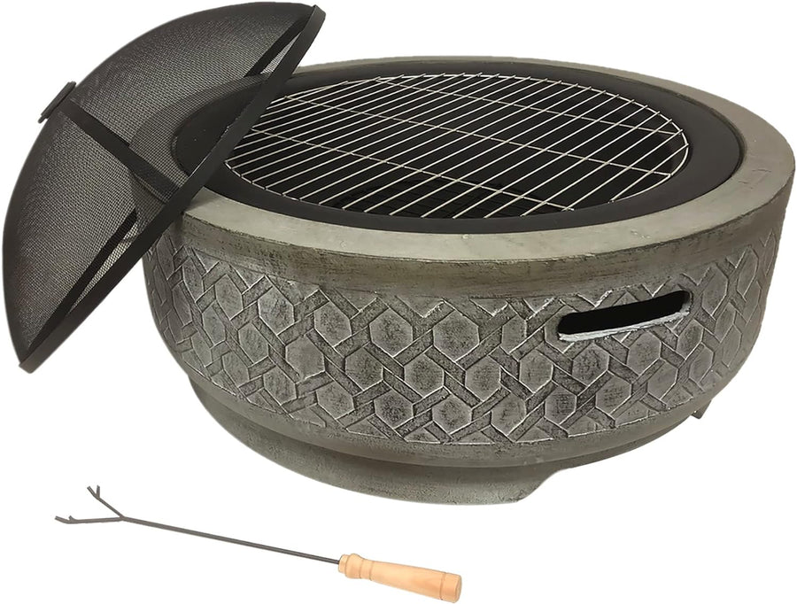 - Diese Feuerschale mit Funkenschutz, die aus einem feinen Drahtgeflecht besteht, um Funkenflug und Glutspritzern zu vermeiden. Es geeignet für alle Arten von brennbaren Stoffen wie Kohle, Holz, Holzkohle usw.
