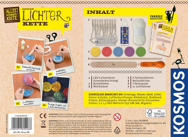 - HOCHWERTIGES MATERIAL FÜR 10 LEUCHTKUGELN: 200 m weisse Wolle, Lebensmittelfarben, 10 Luftballons, Bastel-Kleber, 3 Holzspatel, spitzes Holzstäbchen, LED-Lichterkette, farbig illustriertes Anleitungsheft (16 S.)