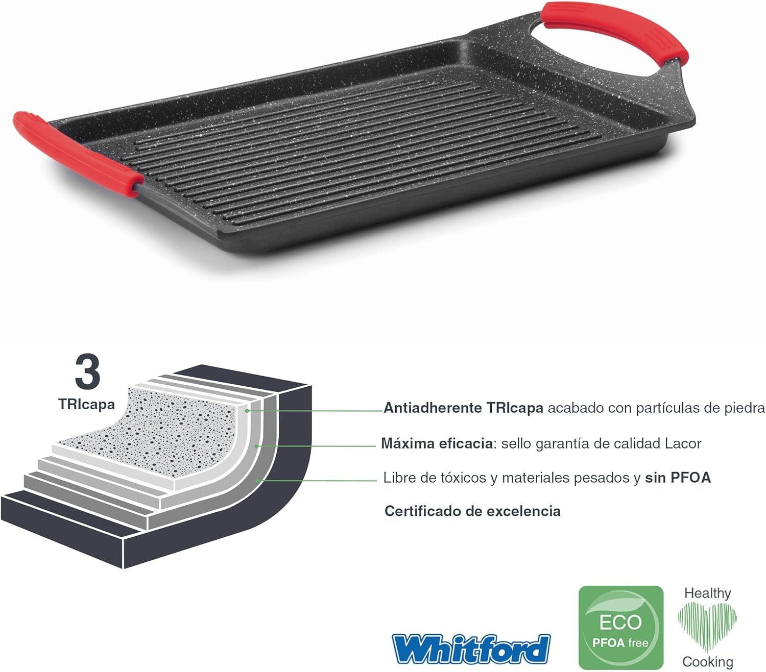 - Gleichmässige Hitzeverteilung ermöglicht schnelles und gleichmässiges Garen ohne Verwendung von Öl