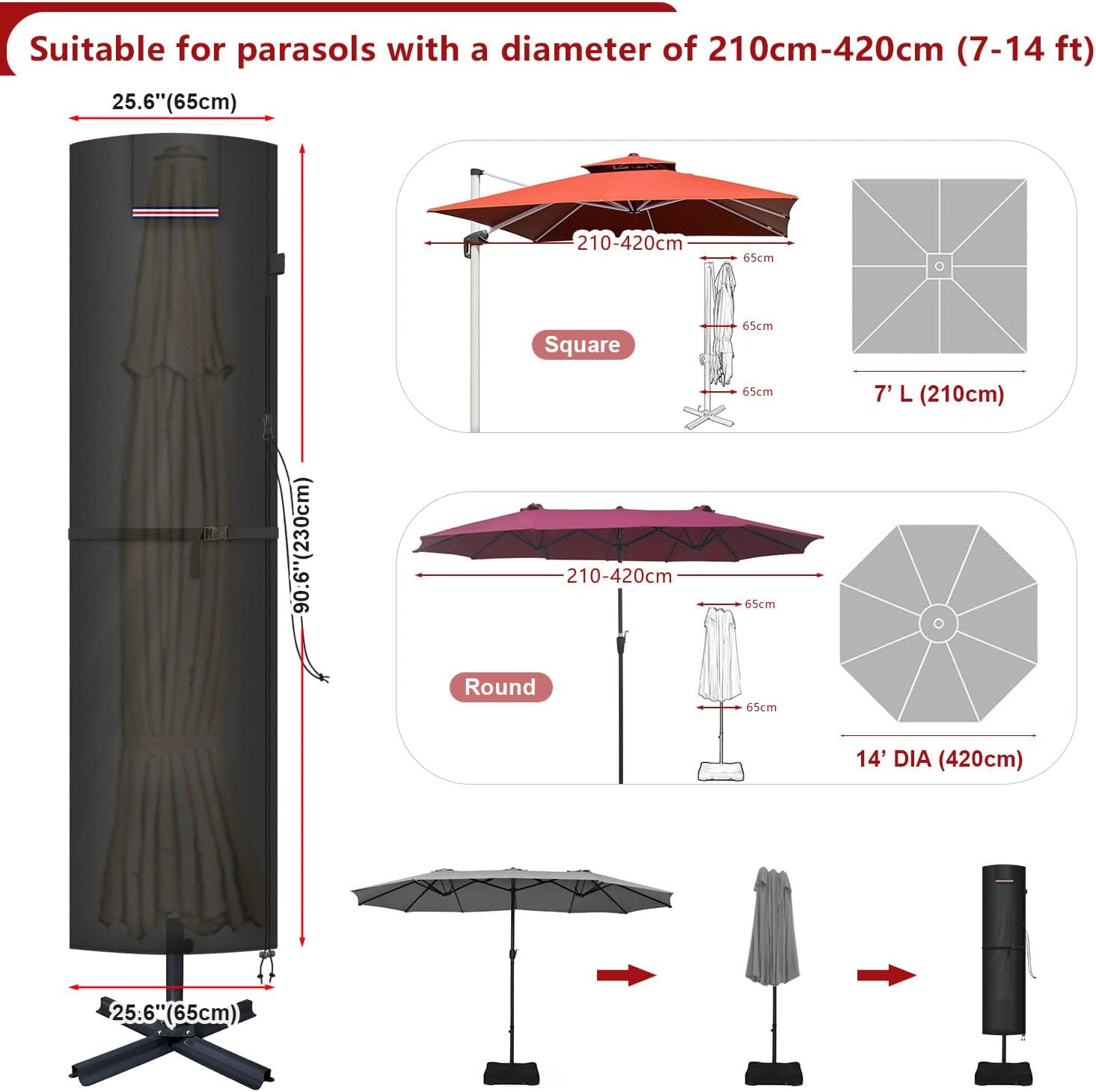 - ↪【Mehrere Grössen verfügbar】Ca. 230cm (Höhe) x 65cm (oben) / 65cm (unten). Grosses Design, diese sonnenschirm hülle ist für die meisten geraden Schirme mit einem Durchmesser von 210cm-420cm (7-14 Füsse) geeignet. Wir haben verschiedene