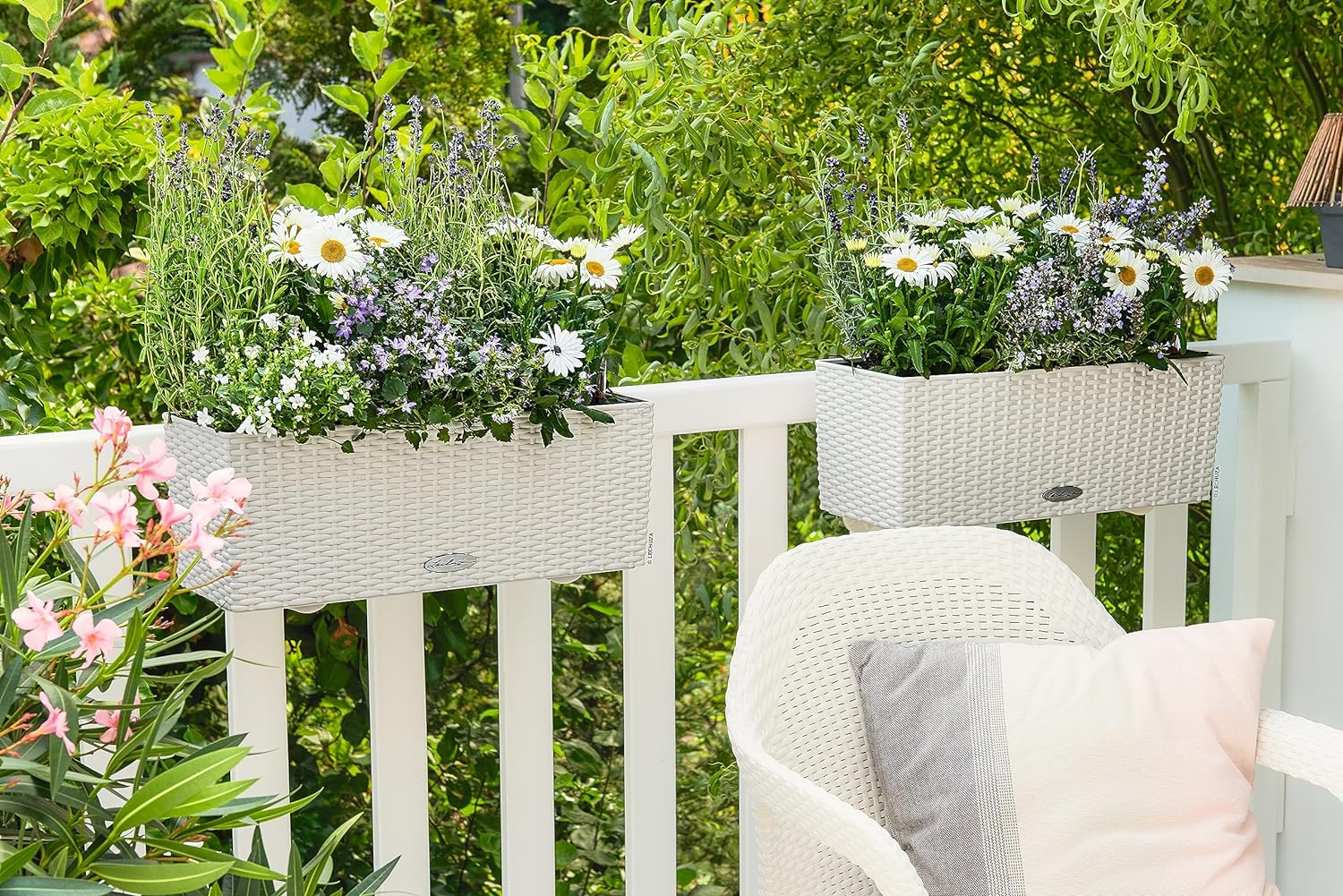 - ALL-IN-ONE: 1x Pflanzgefäss BALCONERA Cottage, inkl. Bewässerungssystem, Pflanzsubstrat LECHUZA-PON als Drainageschicht und wechselbarem Pflanzeinsatz mit versenkbaren Griffen und Wasserstandsanzeiger. Material: Kunststoff Masse: 50 x 19 x 19 cm