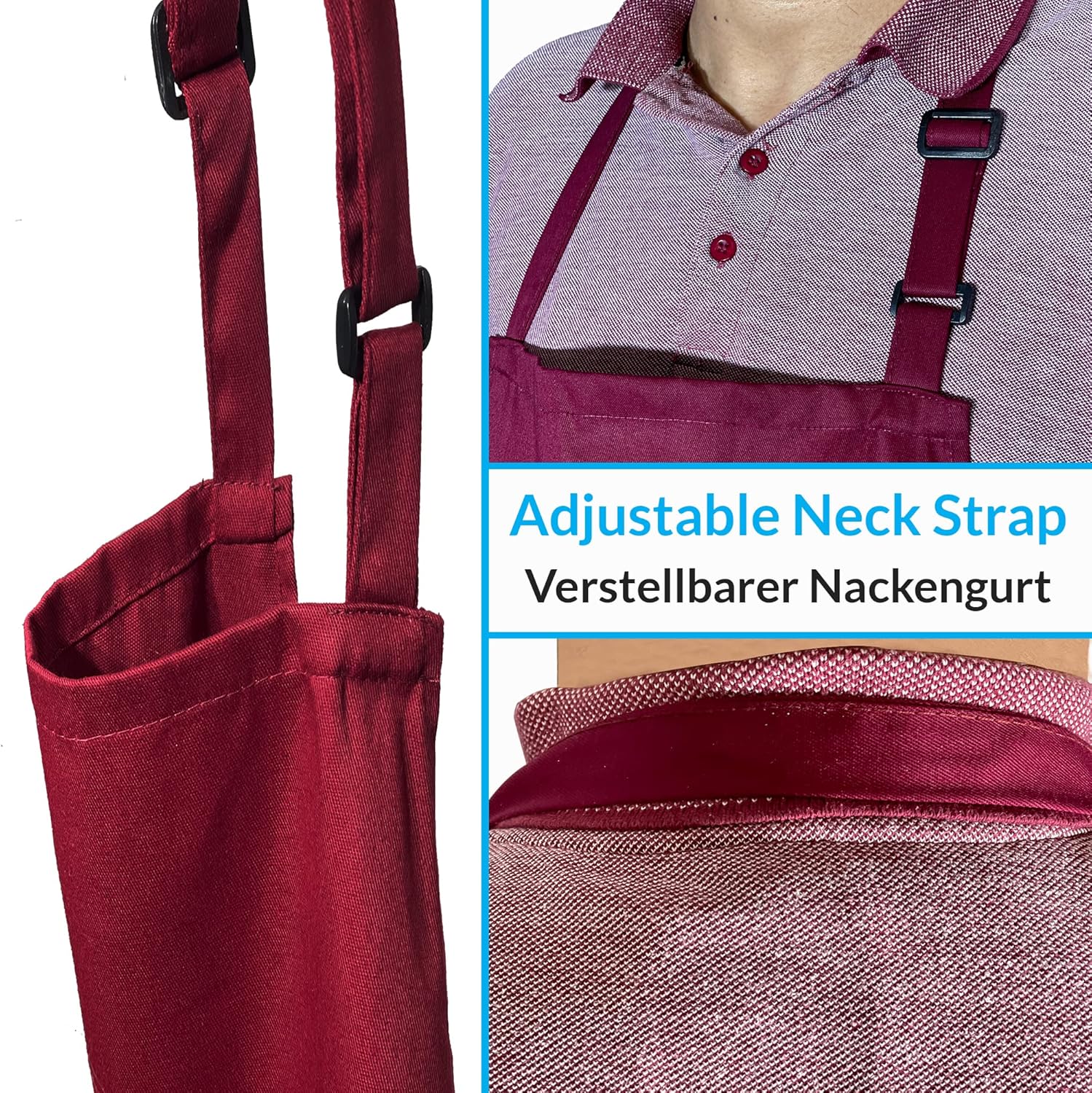 - 💕FLEXIBEL Bis Zur PERFECKTEN GRÖSSE: Schürze ist 65x85 cm gross. Die Länge unserer Schürze kann mit den Nacken- und Bauchbändern nach Bedarf angepasst werden, perfekte Grösse für die meisten Menschen, sowohl für Frauen als auch für Männer